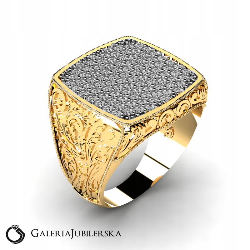 Чоловіча золота каблучка з печаткою, прикрашена цирконами вартістю 14 крон