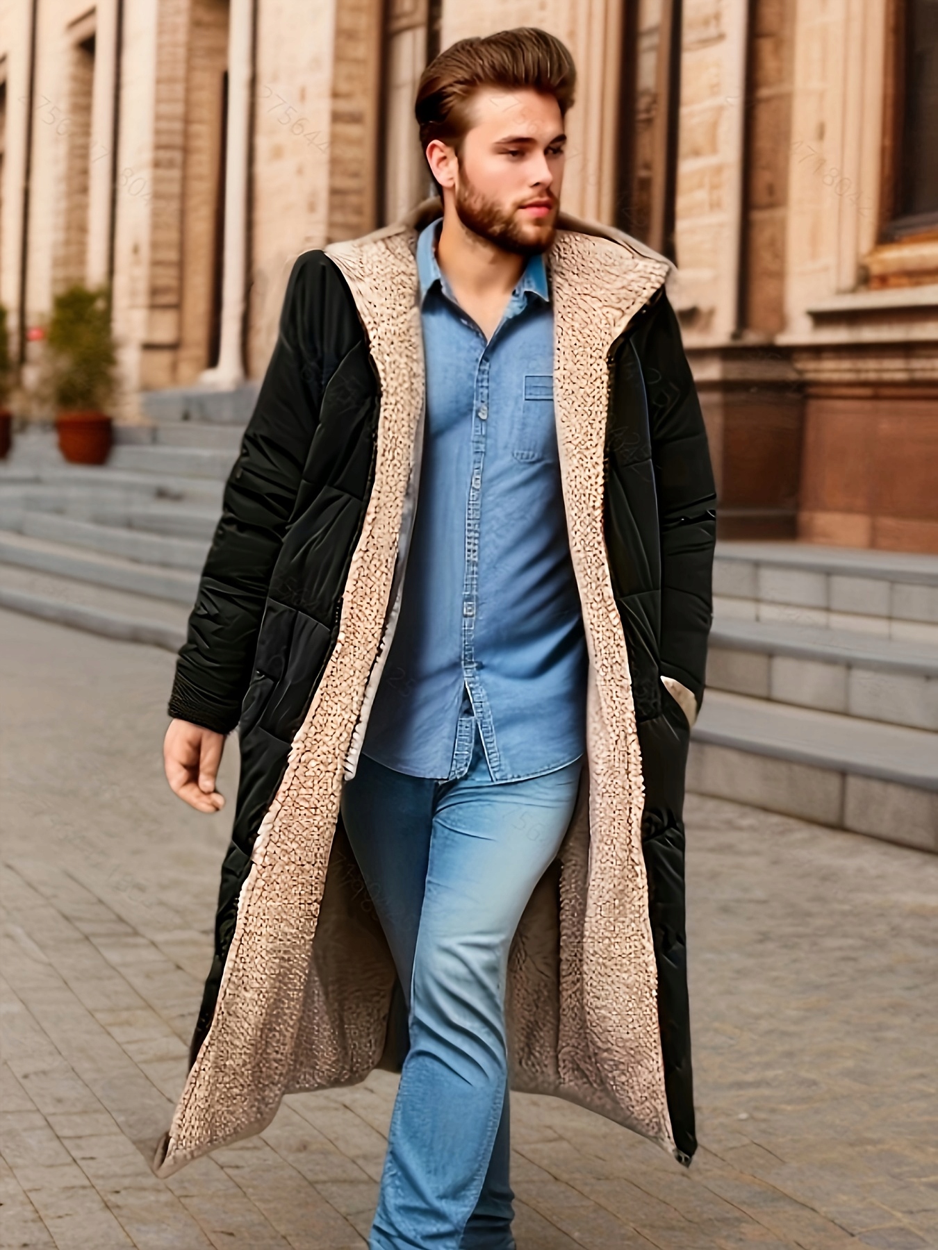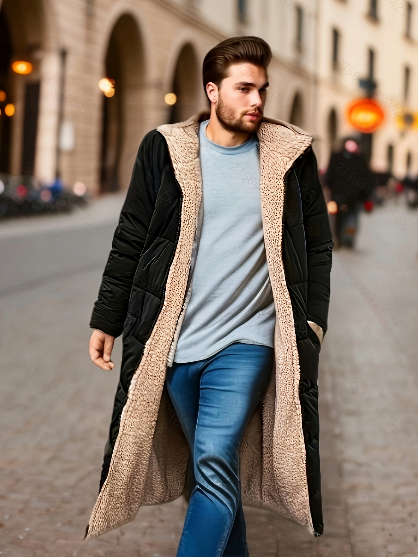 Це чоловіче двостороннє флісове пальто, утеплене хутром, — ідеальне поєднання стилю, комфорту та функціональності для холодних днів.