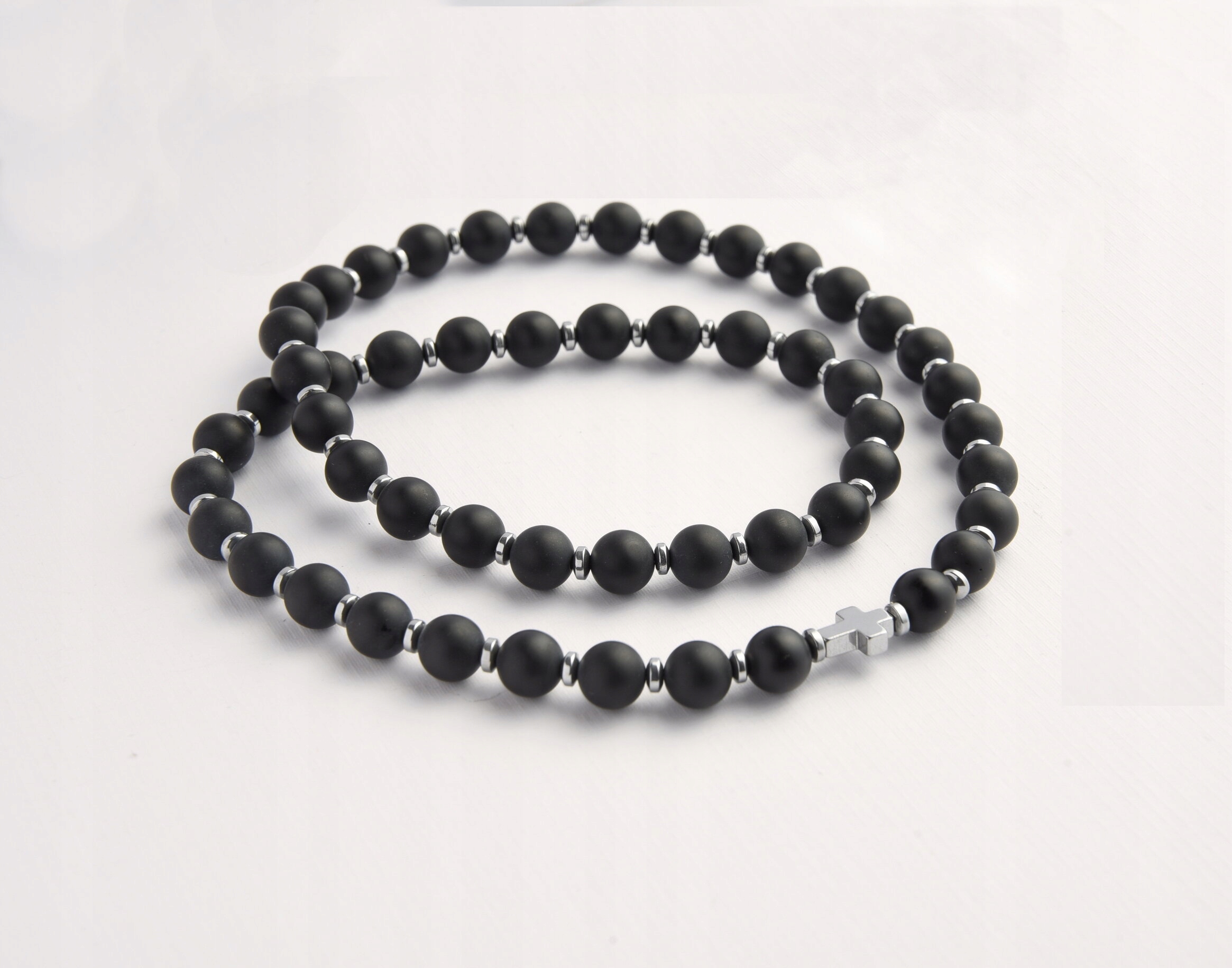 Чоловіче кольє чорного кольору з каменю Онікс + Гематит