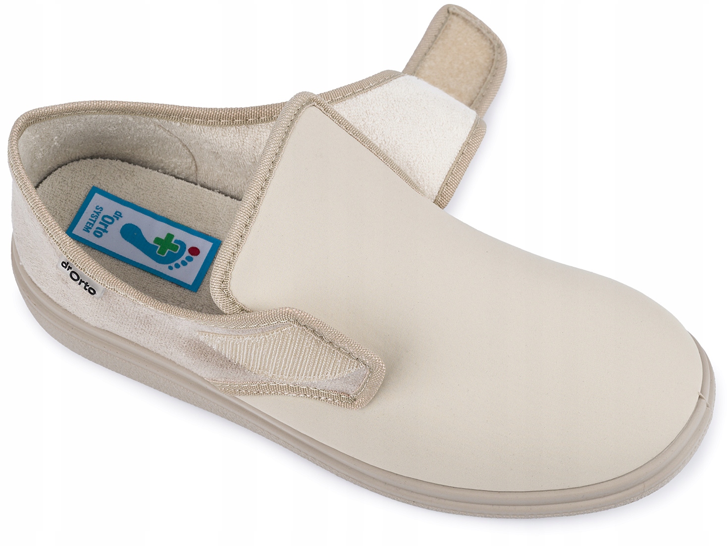 Взуття Dr Orto розроблено для людей з підвищеною чутливістю стоп і з різними захворюваннями, такими як вальгусна деформація або молоточкові пальці. Його Інноваційний дизайн на основі гнучкого, розтяжного матеріалу верху забезпечує зручність і комфорт носіння. Застібка на липучці полегшує надягання і підлаштовується під ширину стопи, що вкрай важливо для людей, які мають ортопедичні проблеми. Взуття також рекомендовано як профілактичний та допоміжний засіб при лікуванні діабетичної стопи.