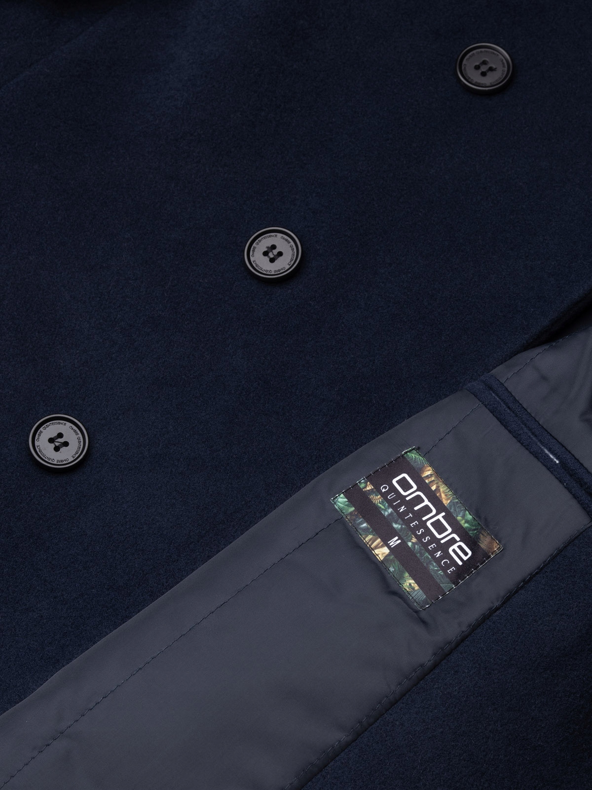 Чоловіче пальто з асиметричною застібкою - темно-синє V3 OM-COWC-0102 L