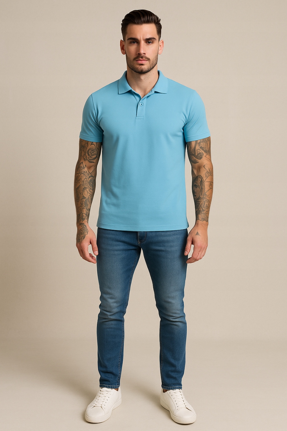 Чоловіче синє поло – легкий і стильний варіант для теплих днів. Ідеально підходить для повсякденного стилю, але свіжий і ніжний у кольорі.