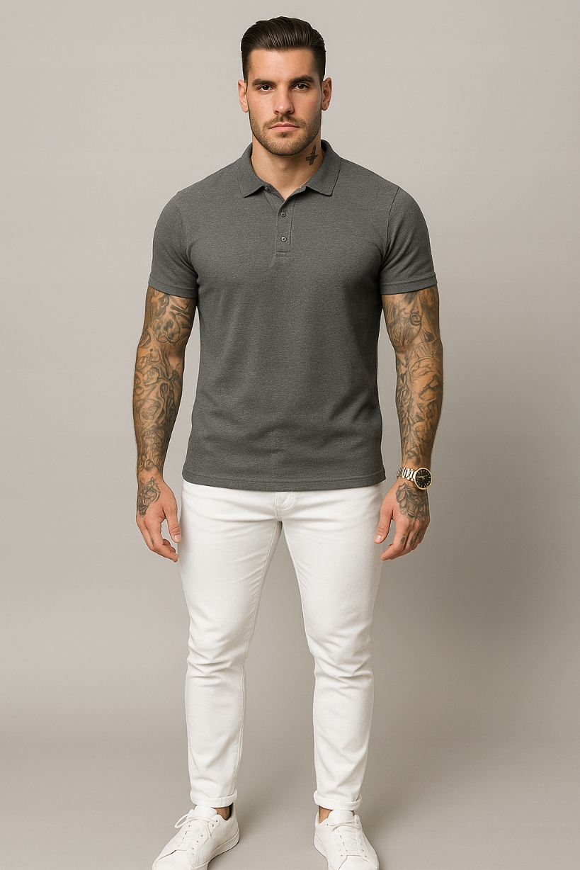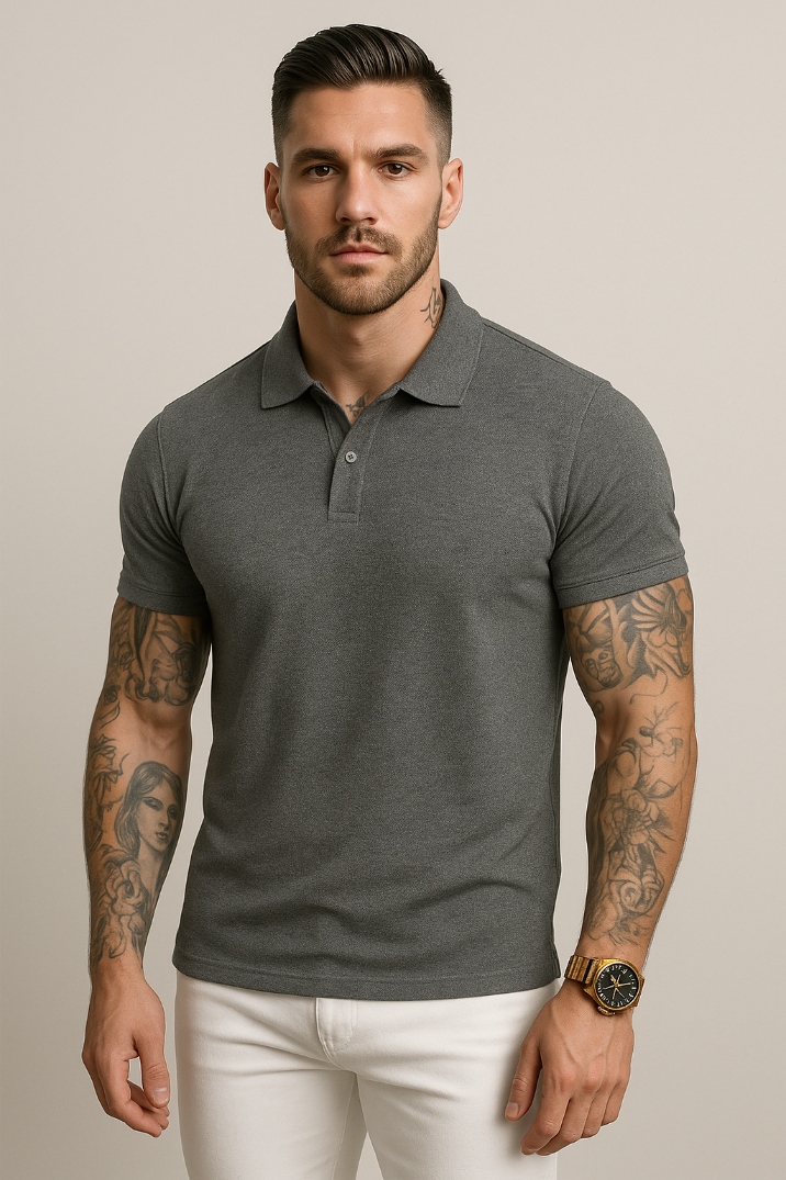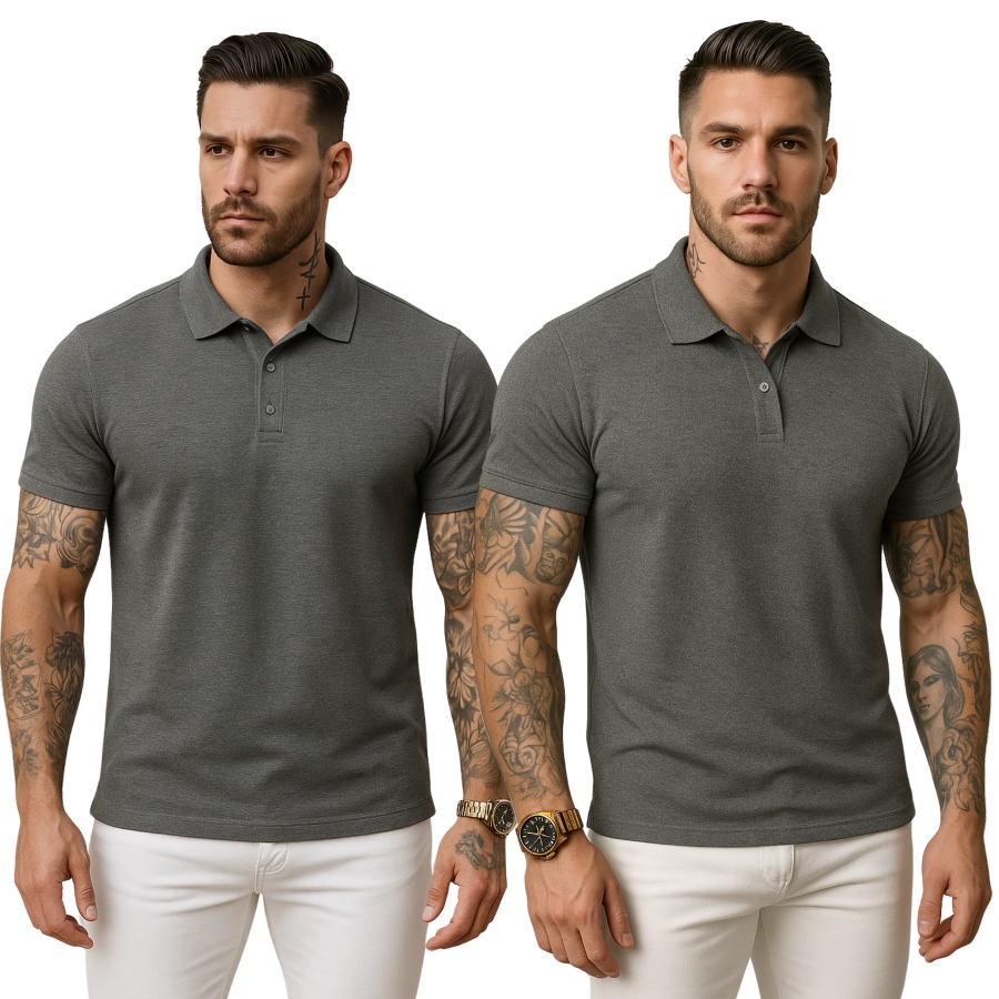 ЧОЛОВІЧЕ ПІВПАЛЬТО - ТЕМНО-СІРИЙ КОЛІР - СОРОЧКА ПОЛО - ЗВИЧАЙНА - КОМІР XXL