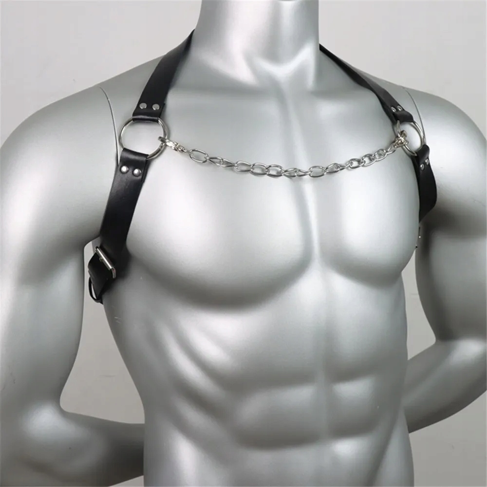 Чоловіче регульоване шлейка з ланцюжком на грудях Чоловіче боді Rave чорного кольору