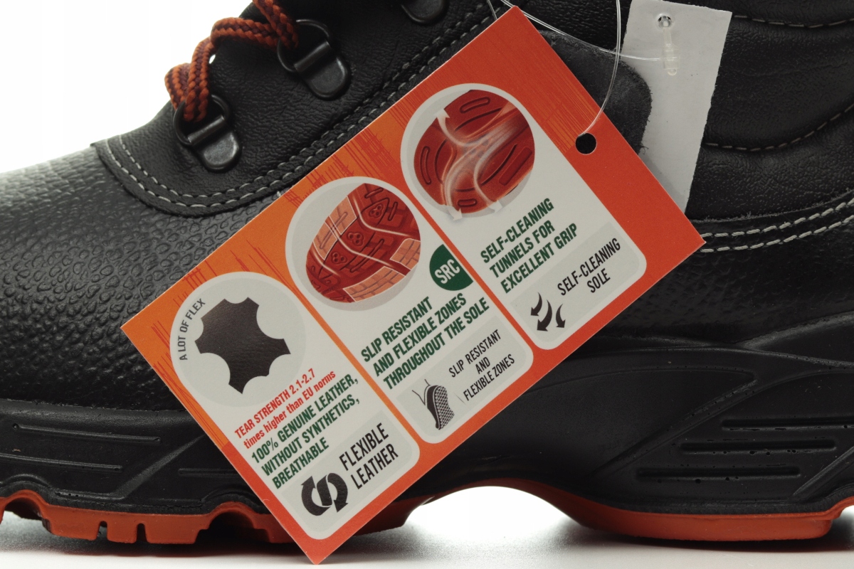Модель Forward 112 S3 — це більш високе робоче взуття з верхом із натуральної шкіри з технологією Strong Protection. Він характеризується розривним навантаженням, що перевищує в 2,1-2,7 рази європейський стандарт EN ISO 20345: 2011.