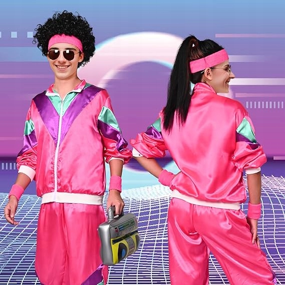 Чоловіче та жіноче вбрання в стилі 80-х, DISCO спортивний костюм спортивний костюм спортивний костюм рожевий XXL