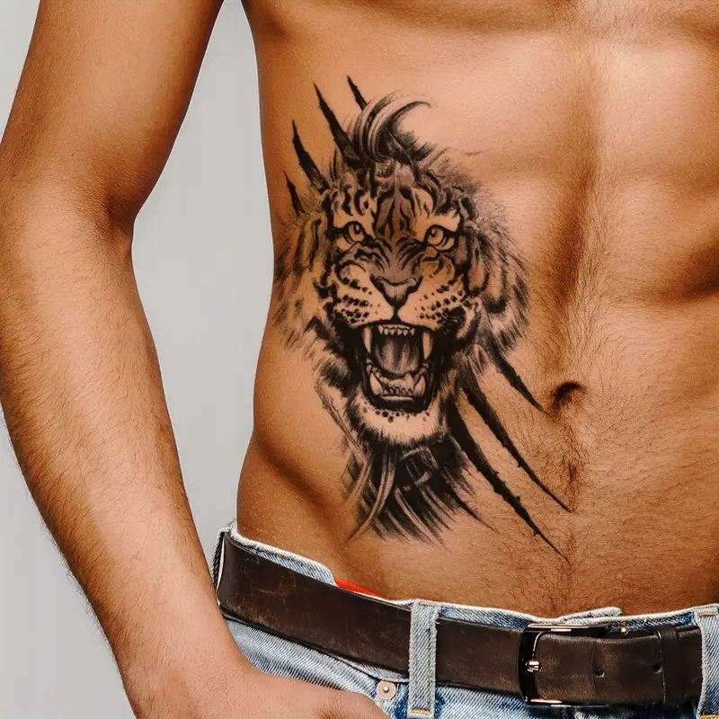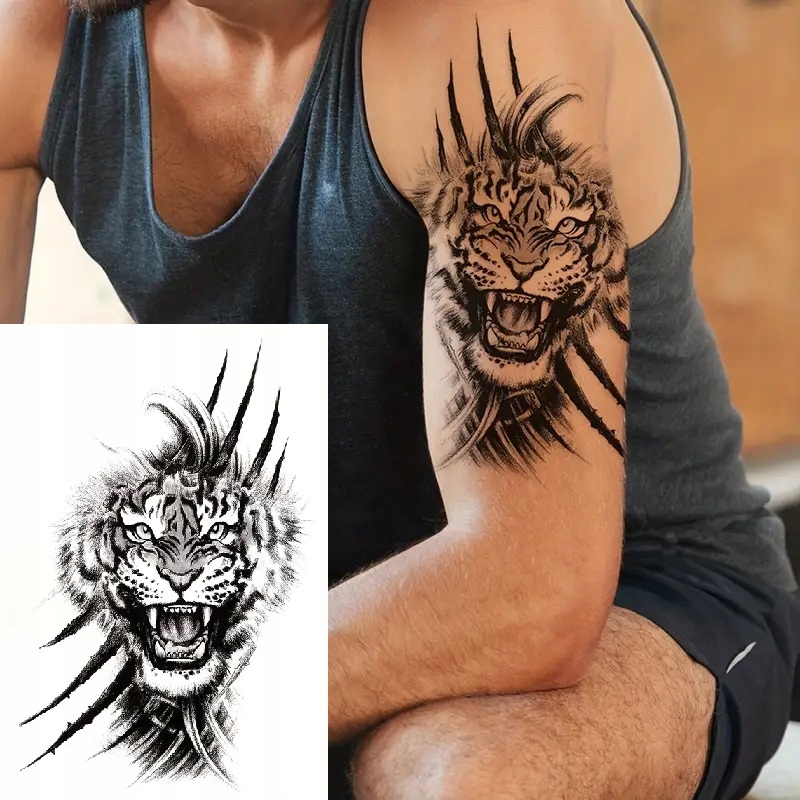 ЧОЛОВІЧЕ ТИМЧАСОВЕ ТАТУЮВАННЯ ТИГРА НА РУЦІ, ПЛЕЧІ, ВЕЛИКЕ, ЩО МОЖЕ МИТИСЯ