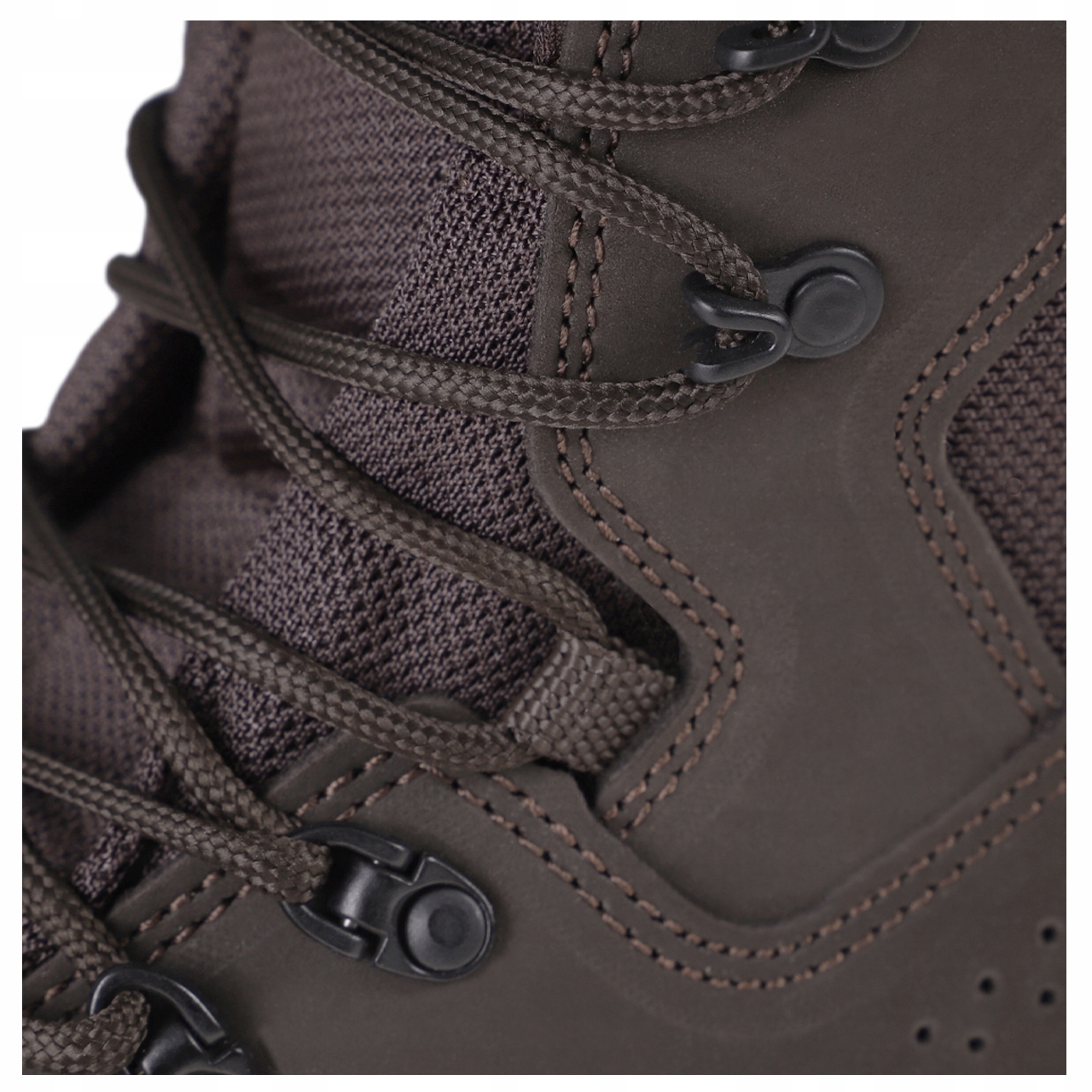 Тактичне взуття з міцного нубуку та кордури, оснащене водонепроникною мембраною ePTFE та самоочисною підошвою з поліуретанового покриття. Завдяки вставці з кевлару та міцній системі шнурівки вони забезпечують безпеку та комфорт навіть у найважчих умовах. Ідеально підходить для офіційної та польової діяльності.