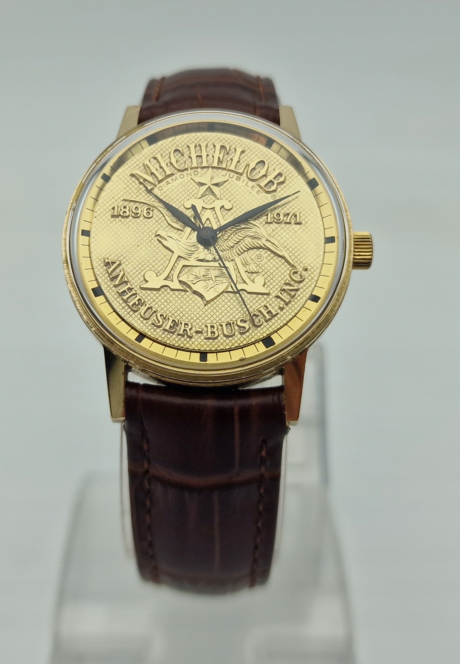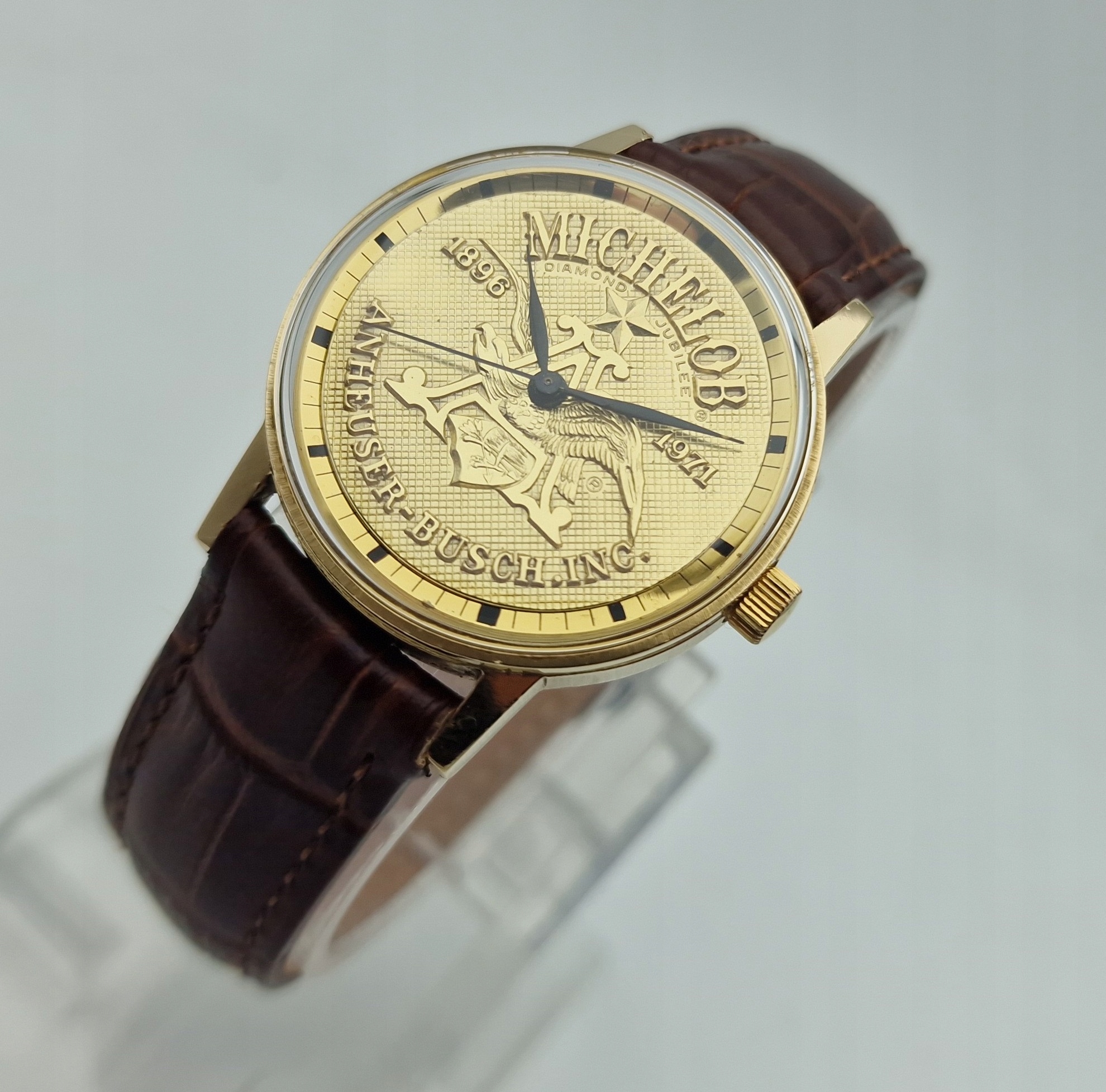 - золотий диск красиво оформлений. Оригінальний щит, підписаний: " Michelob, Diamond Jubilee, 1896, 1971, Anheuser-Busch. INC ". Щит у ідеальному стані, показаний на знімках.