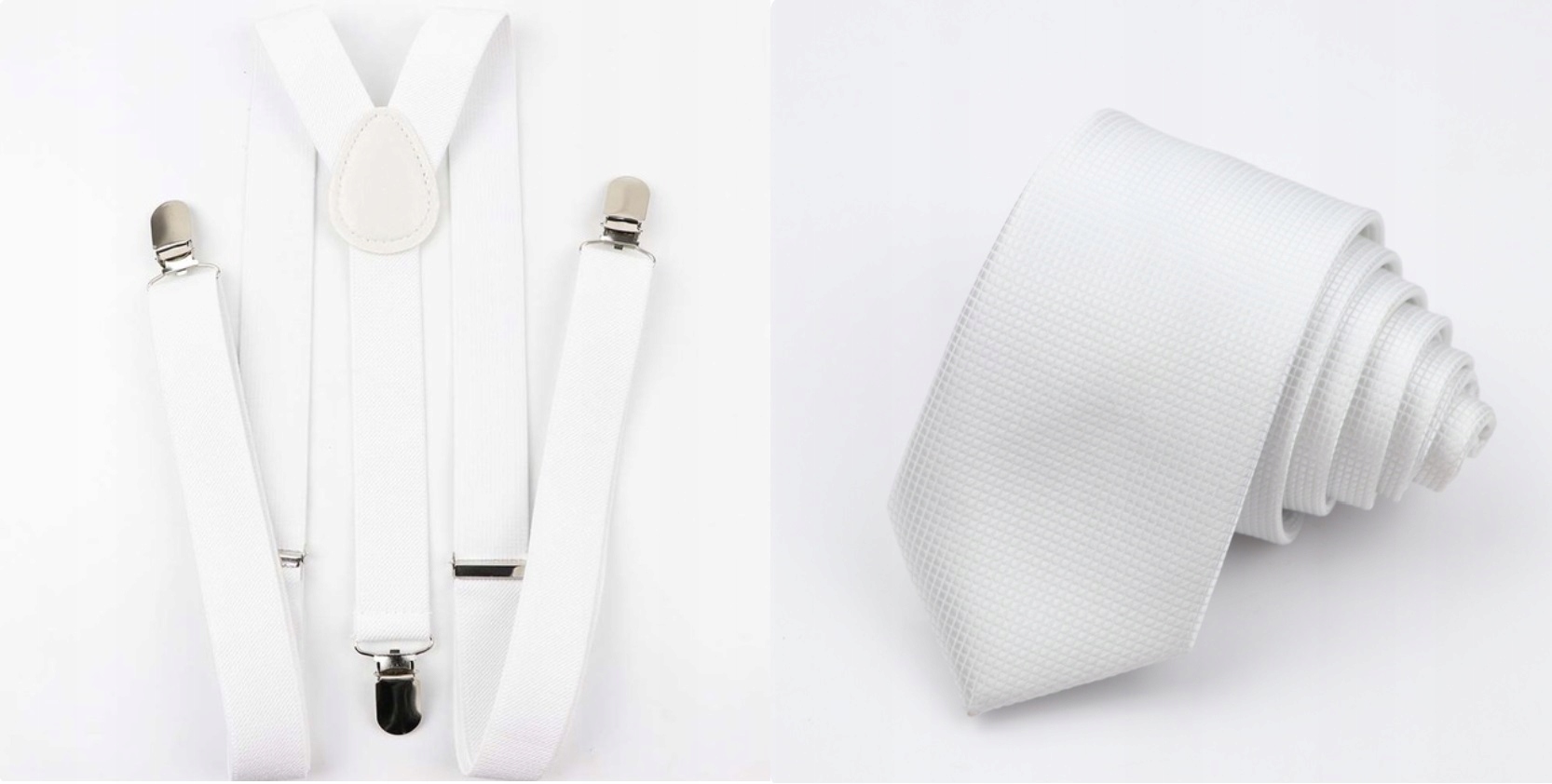 Чоловічі білі підтяжки для брюк і біла чоловіча краватка