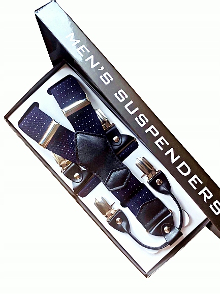 Підтяжки виготовлені з найякіснішої еластичної стрічки шириною 35 мм. Відмінне виконання та якісні матеріали гарантують високу якість продукту. З'єднувачі з екологічної шкіри. Шлейка упакована в елегантну коробку, ідеально підходить для подарунка. .