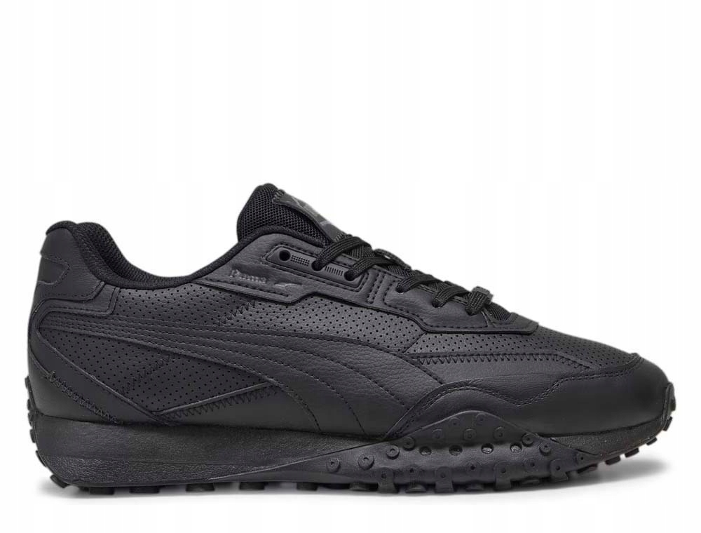 Puma Blktop Rider Leather — це чоловічі кросівки, які є найновішим представником сімейства Puma Rider. Модель відрізняється поєднанням класичного силуету з елементами сучасного дизайну. Чорні чоловічі кросівки Puma Blktop Rider мають перфорований шкіряний верх і зручну підошву EVA. Весь дизайн доповнює характерна підошва зі спеціальними шипами.