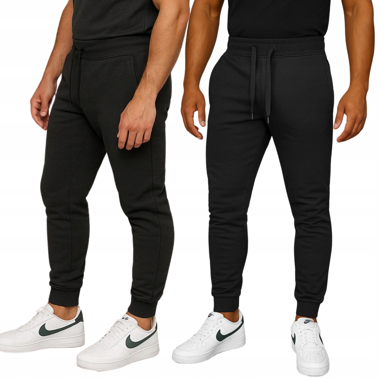 Чорні чоловічі спортивні штани — класична пропозиція для кожного чоловіка, який цінує комфорт і свободу рухів. Виготовлені з м'якого, гнучкого матеріалу, вони забезпечують комфорт кожен день, під час тренувань або відпочинку. Еластичний пояс зі шнурком і манжети на штанинах гарантують ідеальну посадку. Мінімалістичний дизайн і функціональні кишені роблять ці штани ідеальним елементом як спортивного, так і повсякденного стилю.