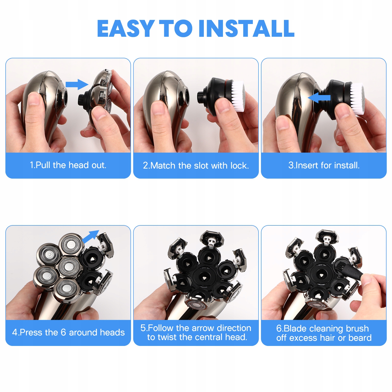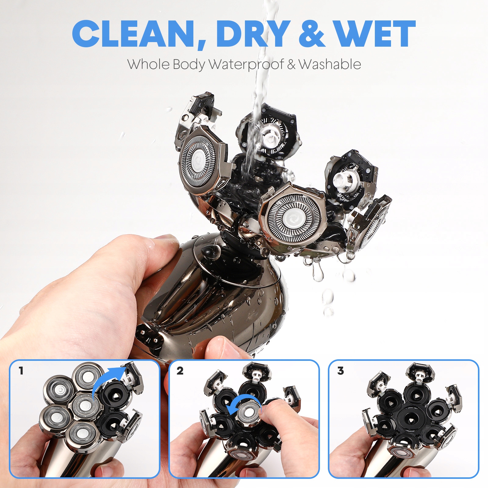 ✅Бритва має сім плаваючих головок, які забезпечують точне гоління, тому ви можете легко досягти бажаного вигляду. Головки легко замінити, що робить їх зручними та практичними у використанні.