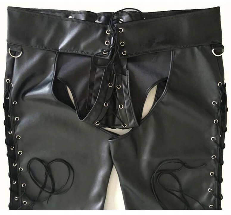 Ці чоловічі еротичні шкіряні штани на зав'язках - пропозиція для сміливих чоловіків, які цінують унікальний стиль і хочуть виділятися в будь-якій ситуації. Чуттєвий крій, відкриті елементи та шнурівка з боків надають штанам неповторний хижий характер. Ідеально підходить для спекотних вечорів удвох, а також для тематичних вечірок чи фотосесій.