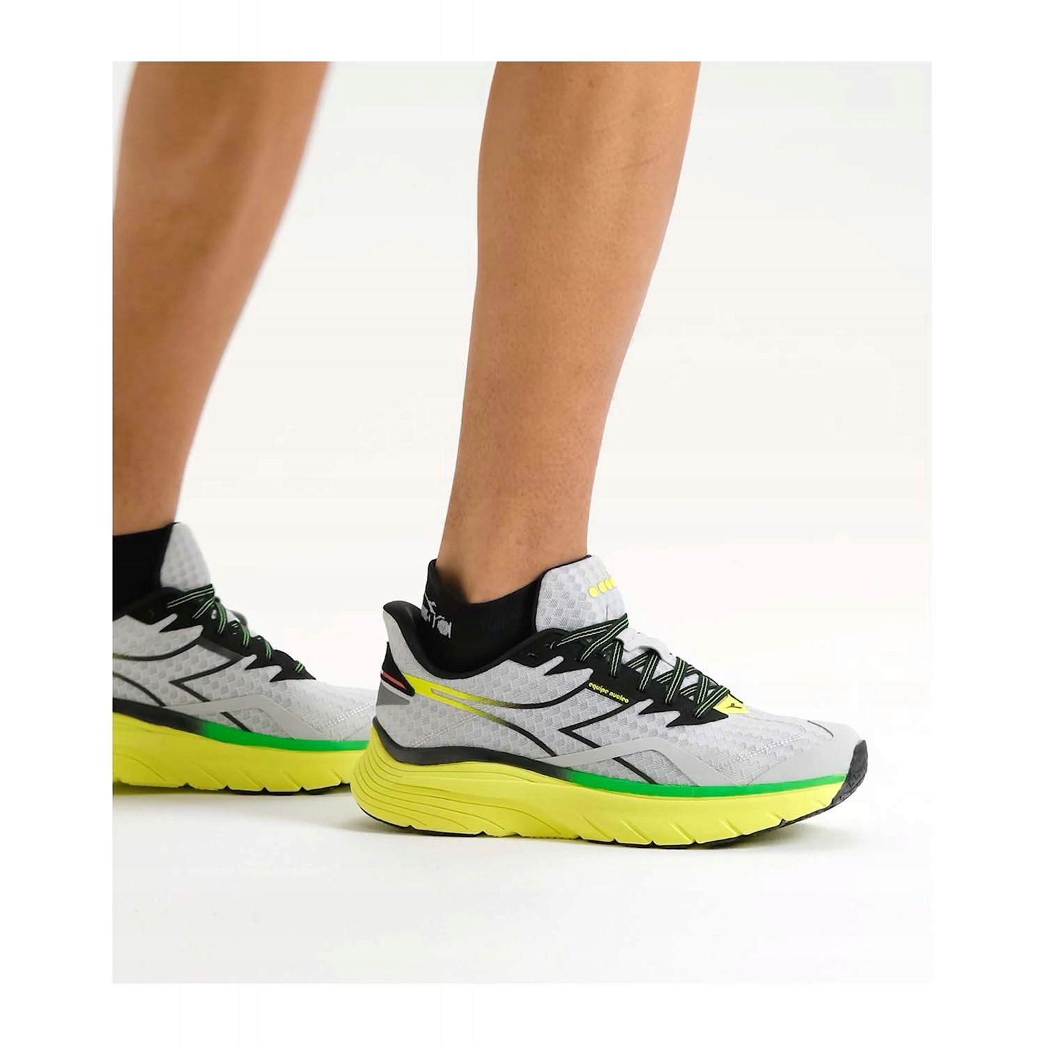 Equipe Nucleo — це чоловіче бігове взуття, створене для міських бігунів і майбутніх викликів. «Nucleo» як головна особливість - устілка, ядро спортивного взуття, яке вирізняється реактивністю та легкістю. Устілка, виготовлена за нашою технологією DD Anima, була розроблена, щоб забезпечити найкращу продуктивність, одночасно забезпечуючи захист і стабільність стопи. Технологія DD Anima забезпечує високу амортизацію, а суміш High Rebound збільшує чуйність проміжної підошви на 30% і зменшує її вагу на 20%. Підошва виготовлена зі стійкої до стирання гуми зі спеціальним складом Duratech 5000 у п’яті.