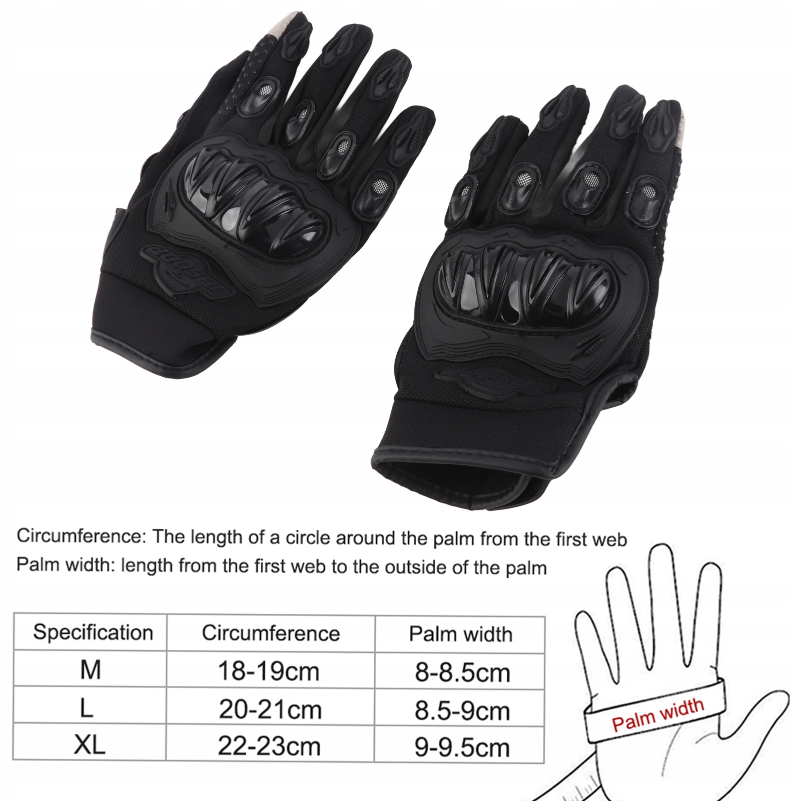 - Ширина руки: 8-8,5 см (м); 8,5-9 см (л); 9-9,5 см (xl)