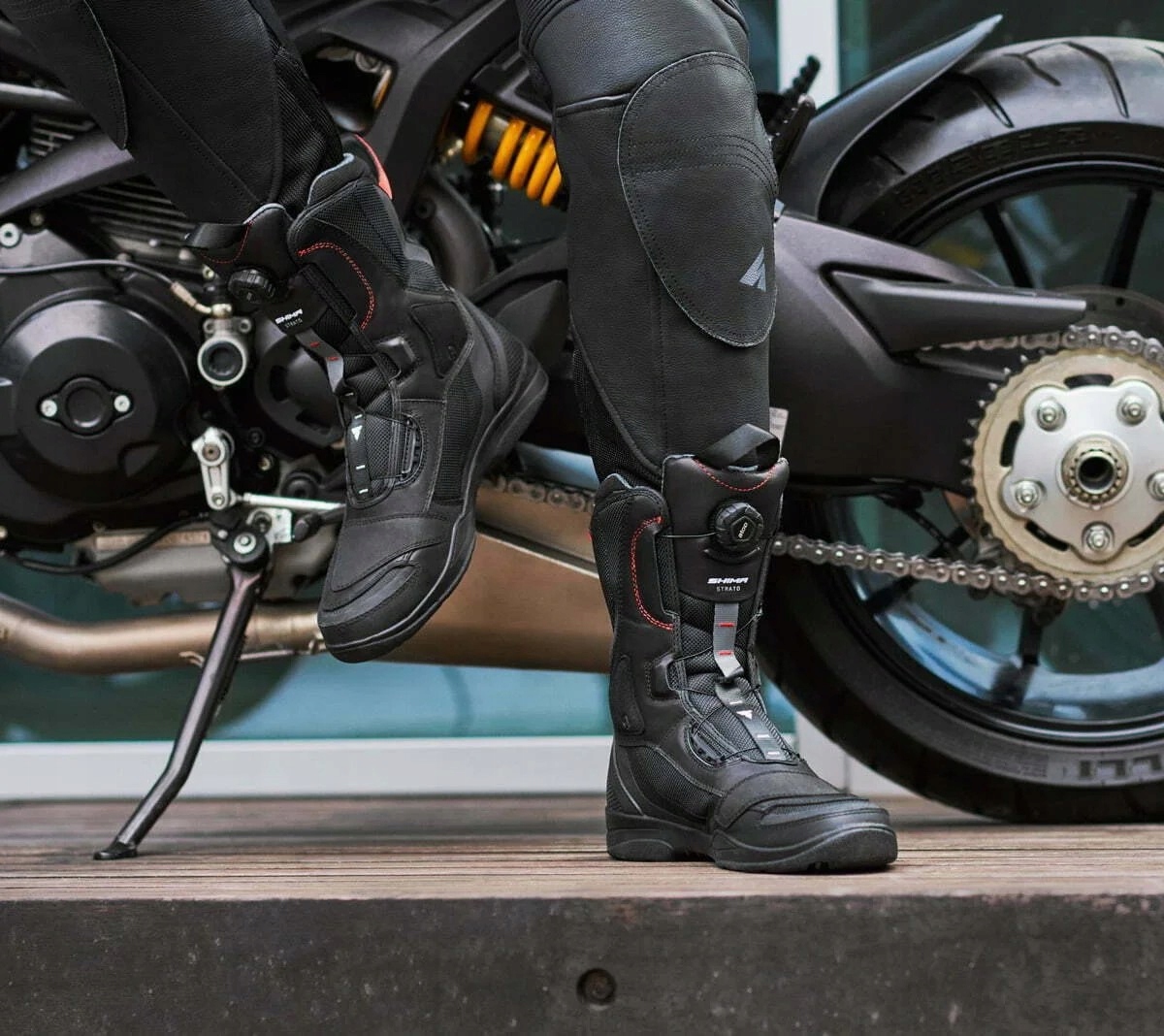 SHIMA STRATO - це новий тип вентильованого взуття. Вони завдячують такій високій вентиляції дуже великим сітчастим панелям і 3D-сітчастій підкладці. Вишуканий дизайн взуття має посилення в стратегічних місцях для забезпечення належної безпеки та амортизації. Щоб задовольнити естетичні, функціональні та комфортні вимоги, STRATO оснащений натяжним ременем і системою шнурівки ATOP, якою можна легко керувати однією рукою, навіть в рукавичках. Знайти ідеальну пару буде нескладно. Більше того, взуття ідеально підготовлене для нічних поїздок. Це пов’язано з великою площею світловідбивних панелей системи нічного бачення, які насправді виглядають як частина дизайну взуття. STRATO забезпечує ідеальний баланс між довговічністю, захистом і повітропроникністю в поєднанні з комфортом вентильованого взуття.
