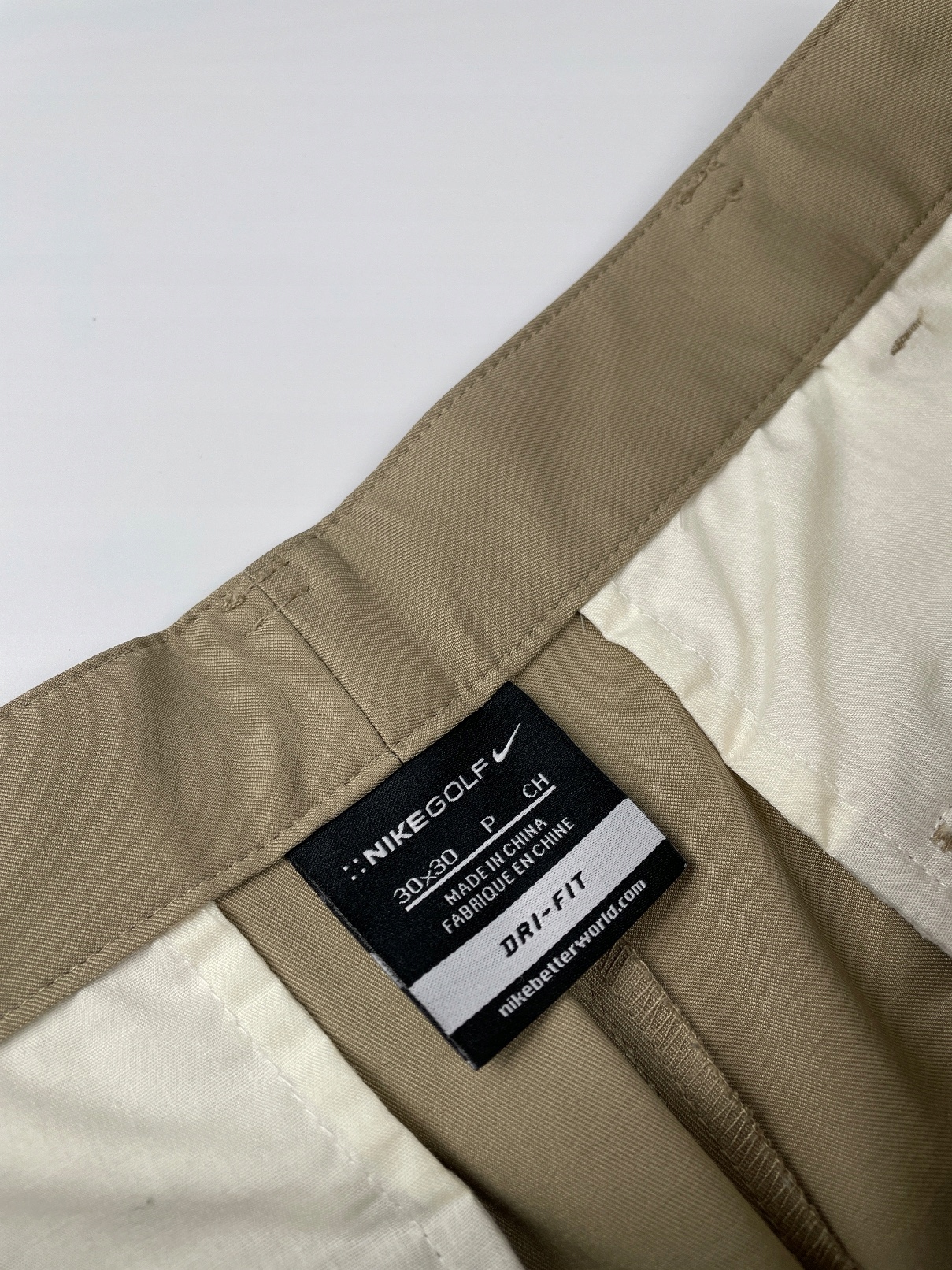 - Чоловічі штани NIKE GOLF бежевого кольору. Штани класичного крою, з прямими штанинами в складку. Застібаються на блискавку і кнопку з логотипом. Виготовлений з приємного на дотик, легкого матеріалу. Вони мають класичні передні та задні кишені та шлевки. Додатковим декоративним елементом є нашивка з логотипом бренду на звороті. Штани призначені для гри в гольф, але вони також будуть чудово виглядати з багатьма повсякденними стилями. Штани виготовлені за технологією NIKE DRI-FIT. Спеціальний дизайн матеріалу дозволяє ефективно транспортувати краплі поту з поверхні шкіри назовні, захищаючи від неприємного відчуття вологи, що залишається на шкірі.