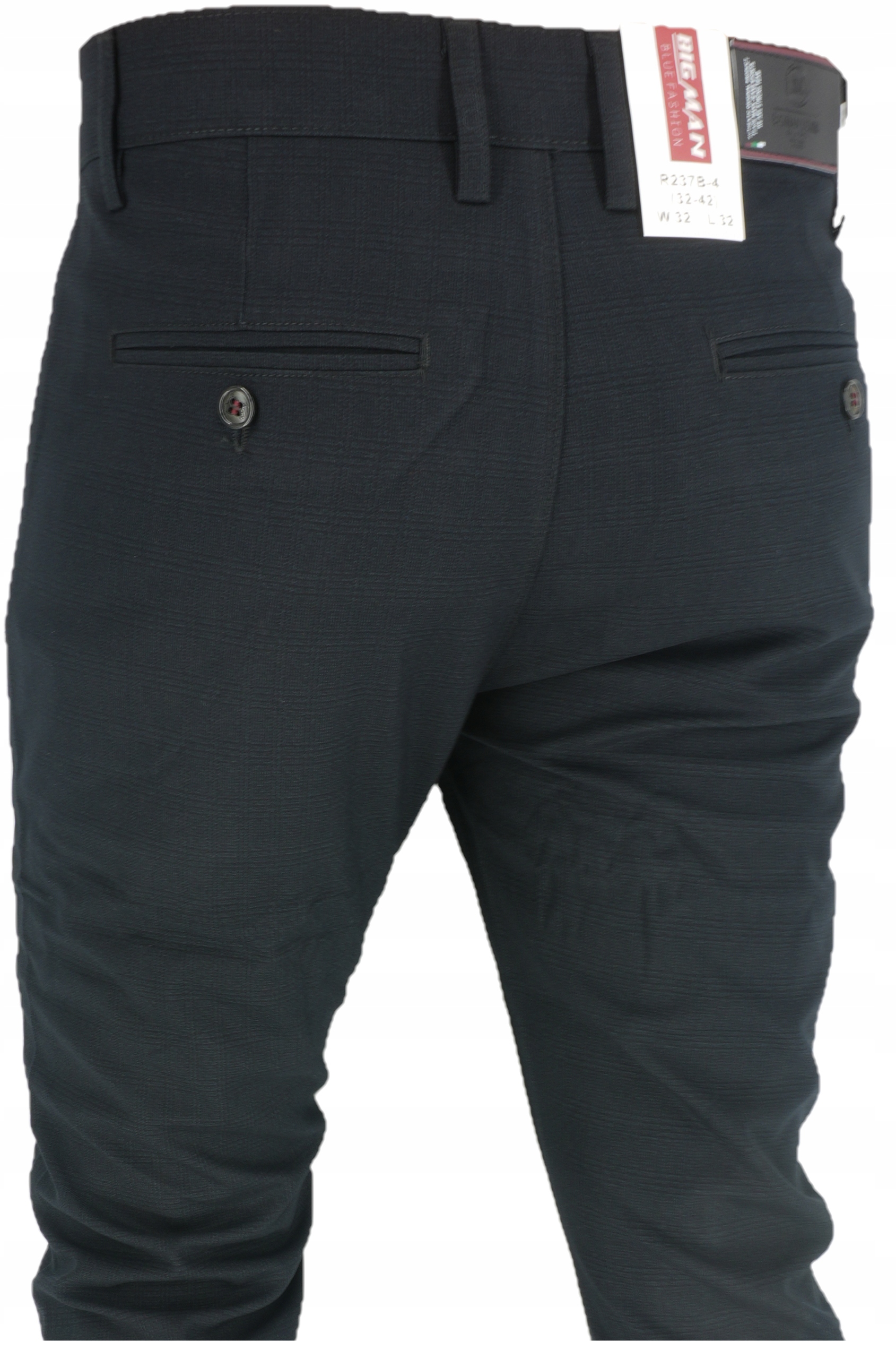 ширина на талії (см)- 94-97; ширина в стегні (вимірюється 10 см від промежини) (см)- 27,5; ширина внизу ноги (см)- 18,5; Довжина ноги від кроку (см)- 79; Юридична довжина ніг (см)- 109; Висота ременя- передня/ззаду (см)- 30.5/36.5