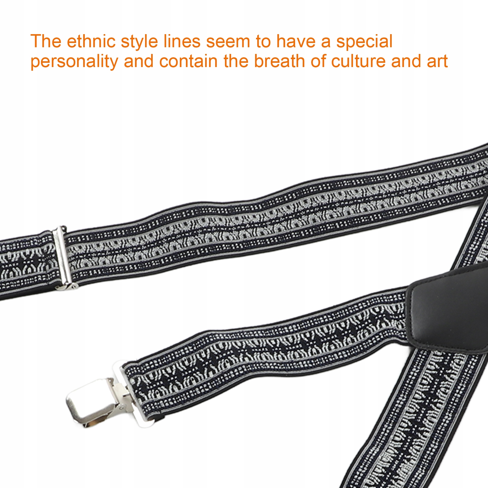 3. Матеріал: еластична тканина, перехрещена з високоякісною шкірою, міцна, міцна металева кліпса з круглими пластиковими вставками, які забезпечують додаткову фіксацію при застібанні штанів і запобігають випаданню одягу.
