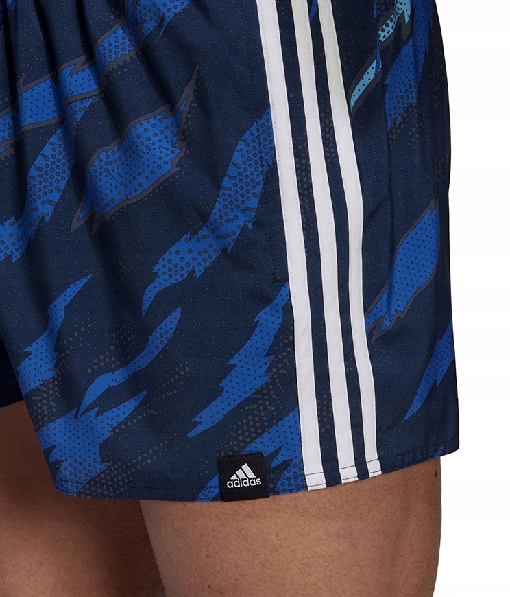 Ці пляжні шорти Adidas із яскравим тигровим принтом не залишаться непоміченими. М’які, легкі та швидковисихаючі, вони ідеально підходять для серфінгу, бігу на пляжі або відпочинку під парасолькою. Бічні сітчасті кишені вміщають ключі, телефон і документи.