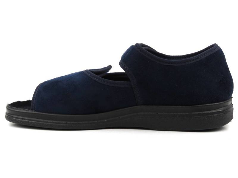 Форма взуття адаптована до потреб і вимог чутливих, хворих ніг. Ширина збільшена. Дві застібки-липучки дозволяють краще прилягати взуття до ноги. Амортизуючий матеріал в нековзкій підошві забезпечує легкість при ходьбі.