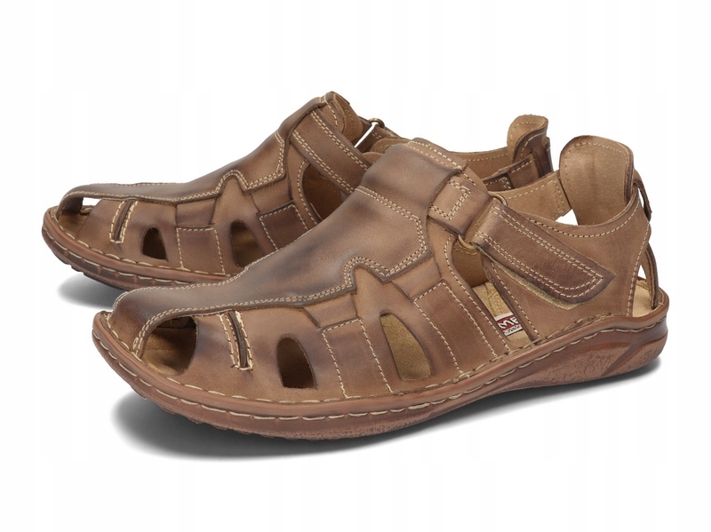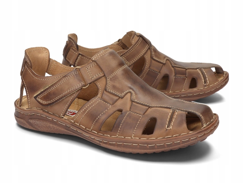 ЧОЛОВІЧІ САНДАЛІЇ НА ЛИПУЧКІ ПОЛЬСЬКА ШКІРА 222 КОРИЧНЕВІ 43