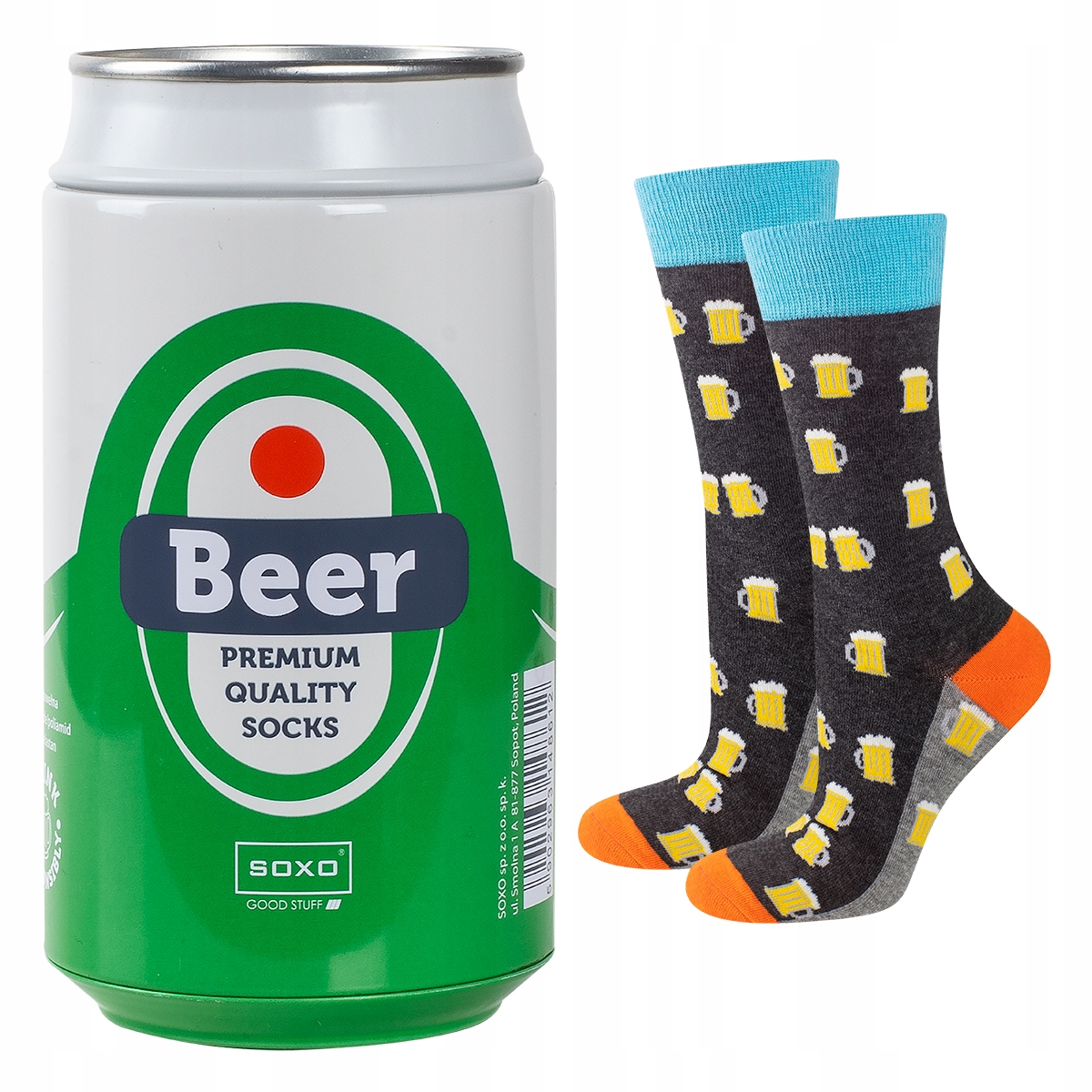 - Високі шкарпетки з високоякісної бавовни з мотивом пива, упаковані в привабливий подарунок жерсть .