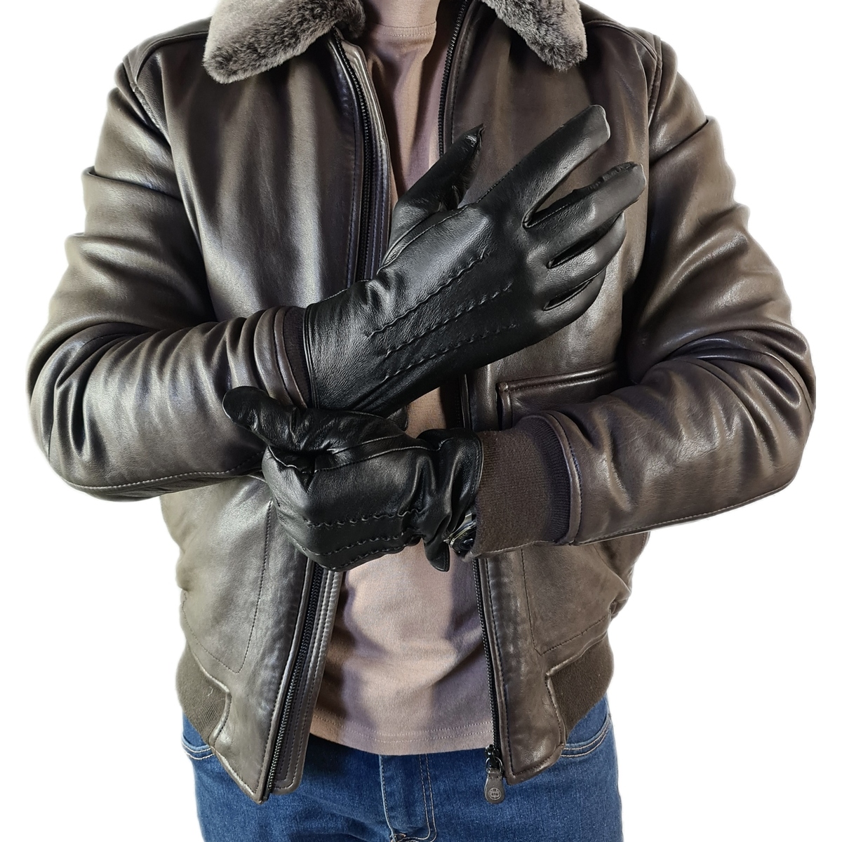 Класичні чорні рукавичкивиготовлені з найякіснішої м'якої НАТУРАЛЬНОЇ ТЕЛЯЧОЇ ШКІРИ НА ПІДкладці з НАЙТУСТШИМ ХУТРОМ. Ретельна обробка та модна прострочка на рукавичках роблять їх унікальними та підійдуть навіть найвимогливішим чоловікам. система керування сенсорним екраном підвищує комфорт використання.