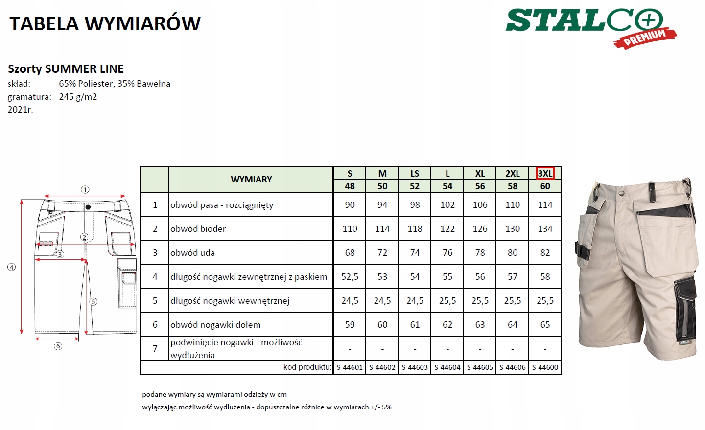 ЧОЛОВІЧІ ШОРТИ ЛІТНІ РОБОЧІ S.3XL STALCO