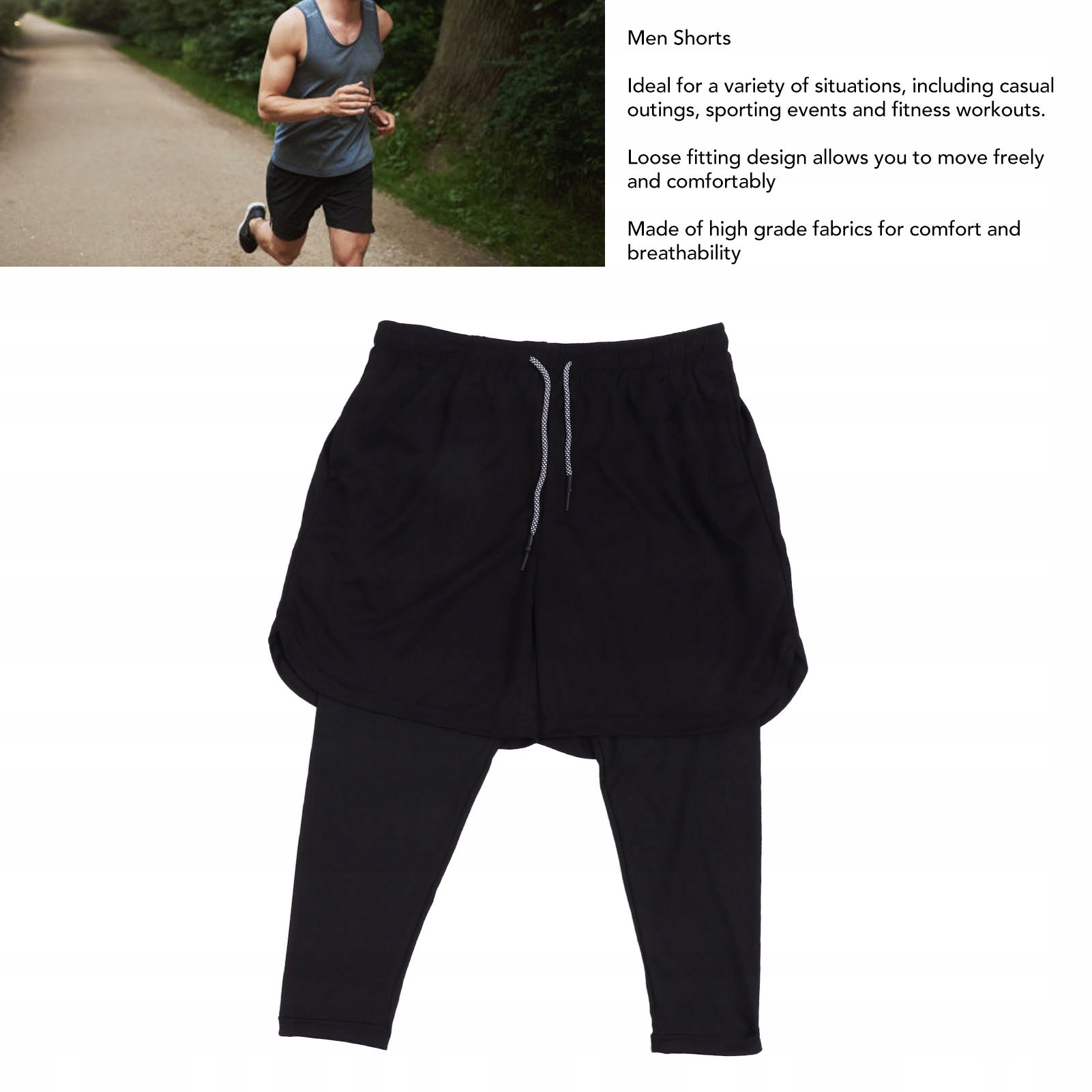 4. Високоякісний матеріал: ці чоловічі спортивні шорти для фітнесу виготовлені з високоякісного матеріалу, який забезпечує комфорт і повітропроникність.