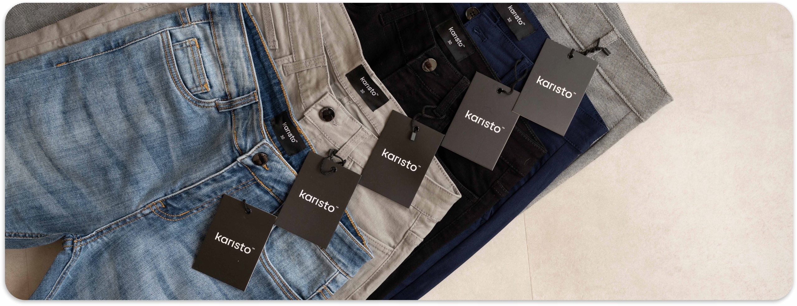 Штани Karisto™це суть досконалості, виготовлені з абсолютною точністю, щоб гарантуватиідеальну посадку. Наш бренд гарантує найвищуякість, пропонуючи джинси, які ідеально облягають щиколотку та не мають собі рівних у довговічності. Ідеально підходить дляособливих випадків.