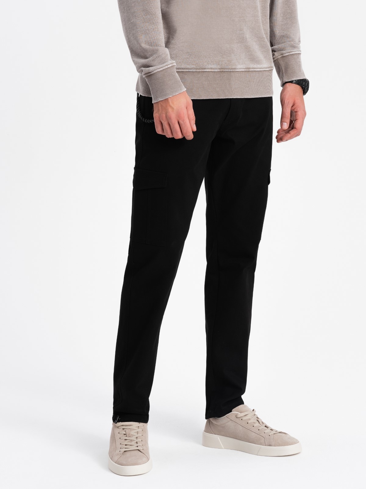 Чоловічі брюки з кишенями карго і шнурком внизу штанин - чорні V5 OM-PACG-0189 S