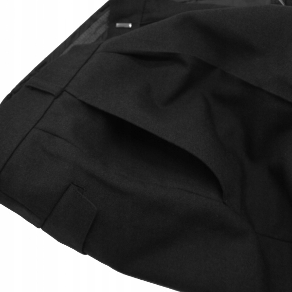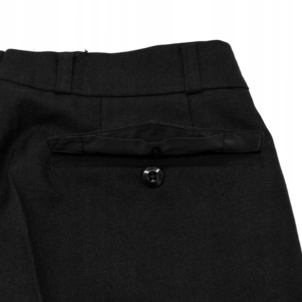 Штани застібаються на гачок і блискавку і мають загалом 3 кишені. Дві класичні бічні кишені і одна, що застібається на гудзики ззаду штанів. Вони мають шлевки для ременя, що дозволяє носити ремінь шириною не більше 3 см.