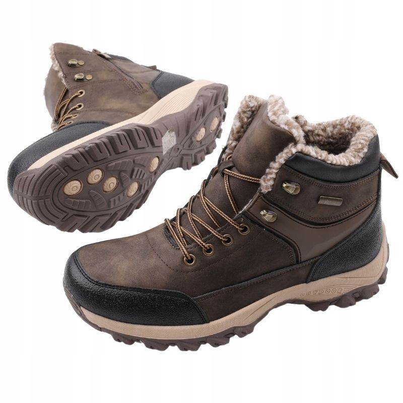 Чоловічі походи на товстій, злегка нерегулярній підошві з протектором, що збільшує взуття до землі. З закругленим носом. В верхній частині щиколотки, прикрашений вставками різних текстур і зшивання. Мереживо -П, додатково обладнане блискавкою. Зроблено з еко -ланцюга, сильно ізольована наслідуванням хутра Барані. Вони чудово виглядають в компанії випадкових джинсів та спортивних треків!