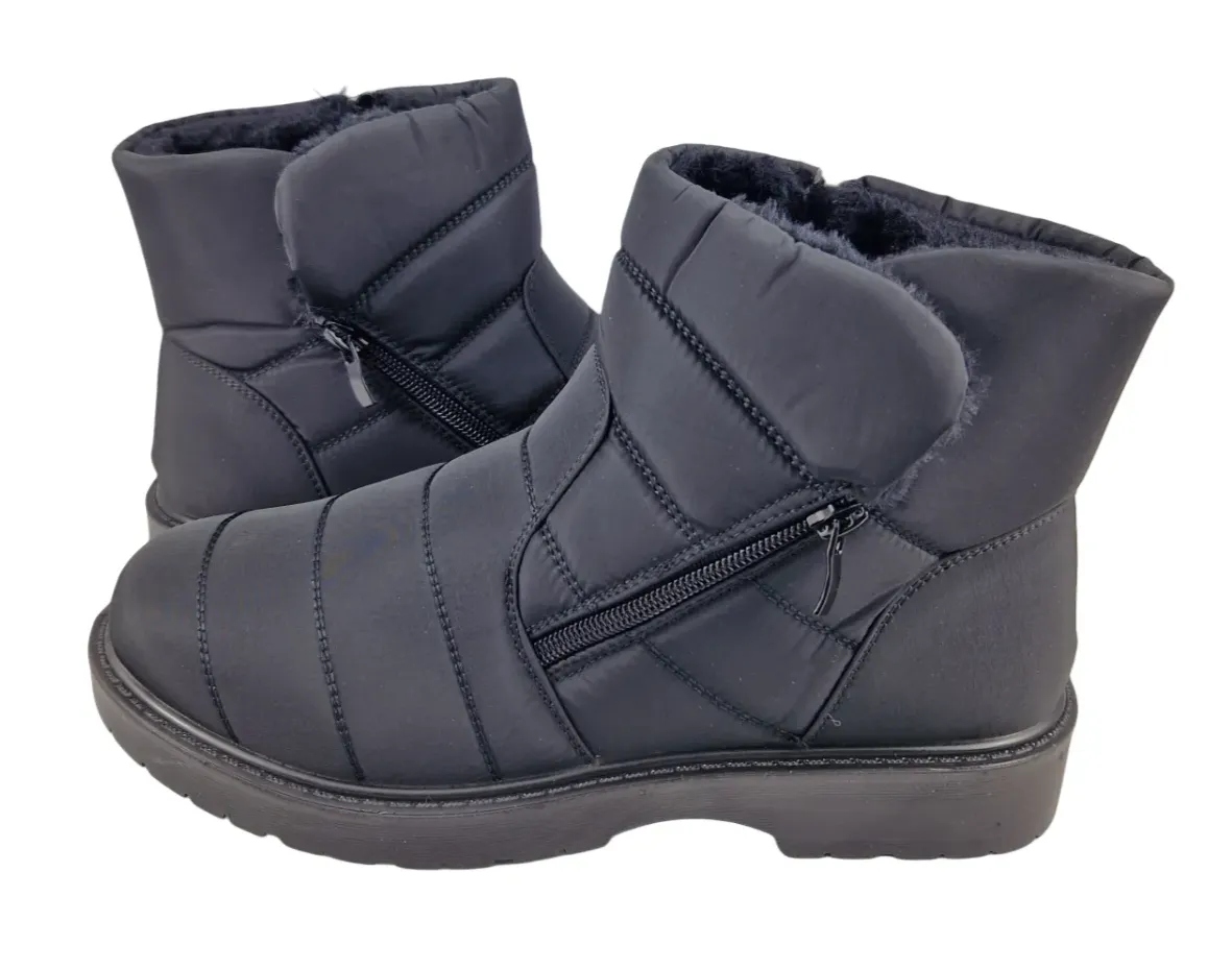 Практичні та комфортні чоловічі снігові черевики ідеально підходять для зими. Виготовлений з міцних матеріалів, що захищають від холоду та вологи. Завдяки суцільному потеплінню всередині взуття гарантує тепловий комфорт навіть при дуже низьких температурах. Взуття має практичний бічний замок, який робить надягання та зліт - це швидко та комфортно. Підошва, яка не є, забезпечує стабільність на крижаних та сніжних поверхнях, а класичний чорний колір надає їм універсальний характер, що відповідає кожній зимовій стилілізації.
