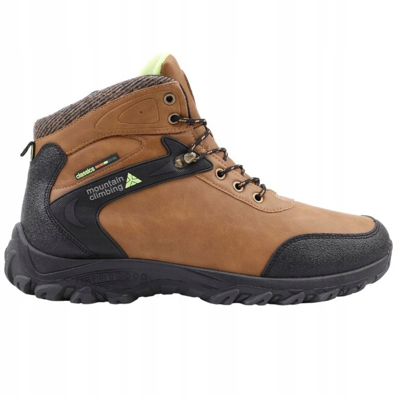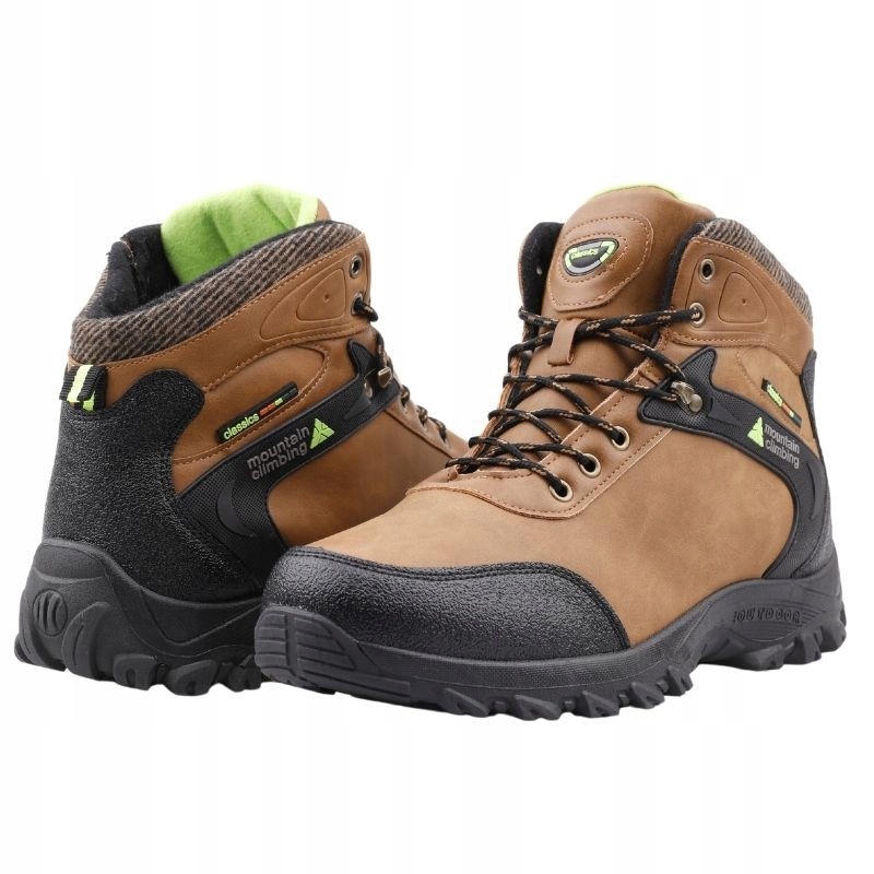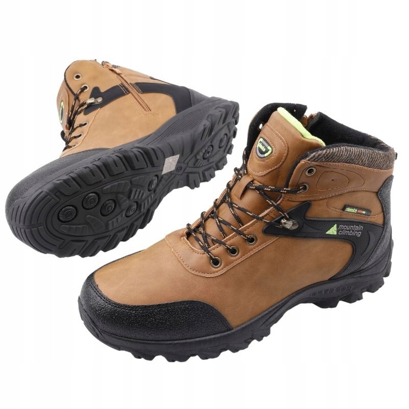 чоловіки в походах на густу підошву зі стабілізуючим захисником. Пронизаний. Зроблено з синтетичного нуку, підкріпленого екологічними шкіряними вставками. Крім того, на блискавці на блискавці зсередини. Модель прикрашена численними зшиваннями та вставками. Сильно ізольований зсередини з наслідуванням хутра Барані.