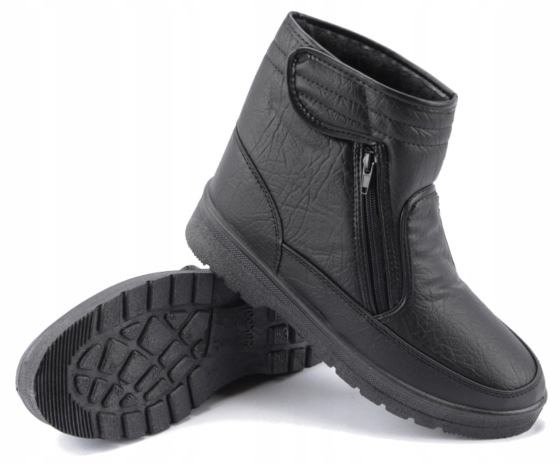 Чоловіче зимове взуття повністю виготовлене з високоякісної екологічної шкіри, на липучці та блискавці. Дуже м'які чобітки, що прилягають до ноги, утеплені теплим хутром з неслизьким низом, ідеально підходять для хворих ніжок. Підошва ізолює від холоду.