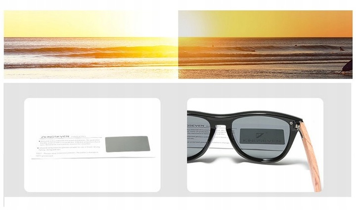 Завдяки поляризації, окуляри KINGSEVEN чудово захищають ваші очі під час сильного сонячного світла, скло окулярів, завдяки своїй конструкції, запобігає відблискам світла та відблискам, які блокуються за лінзами.