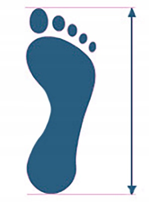 - - виміряйте відстань у сантиметрах між найдовшими точками стопи (від початку найдовшого пальця до самого кінця п’яти)