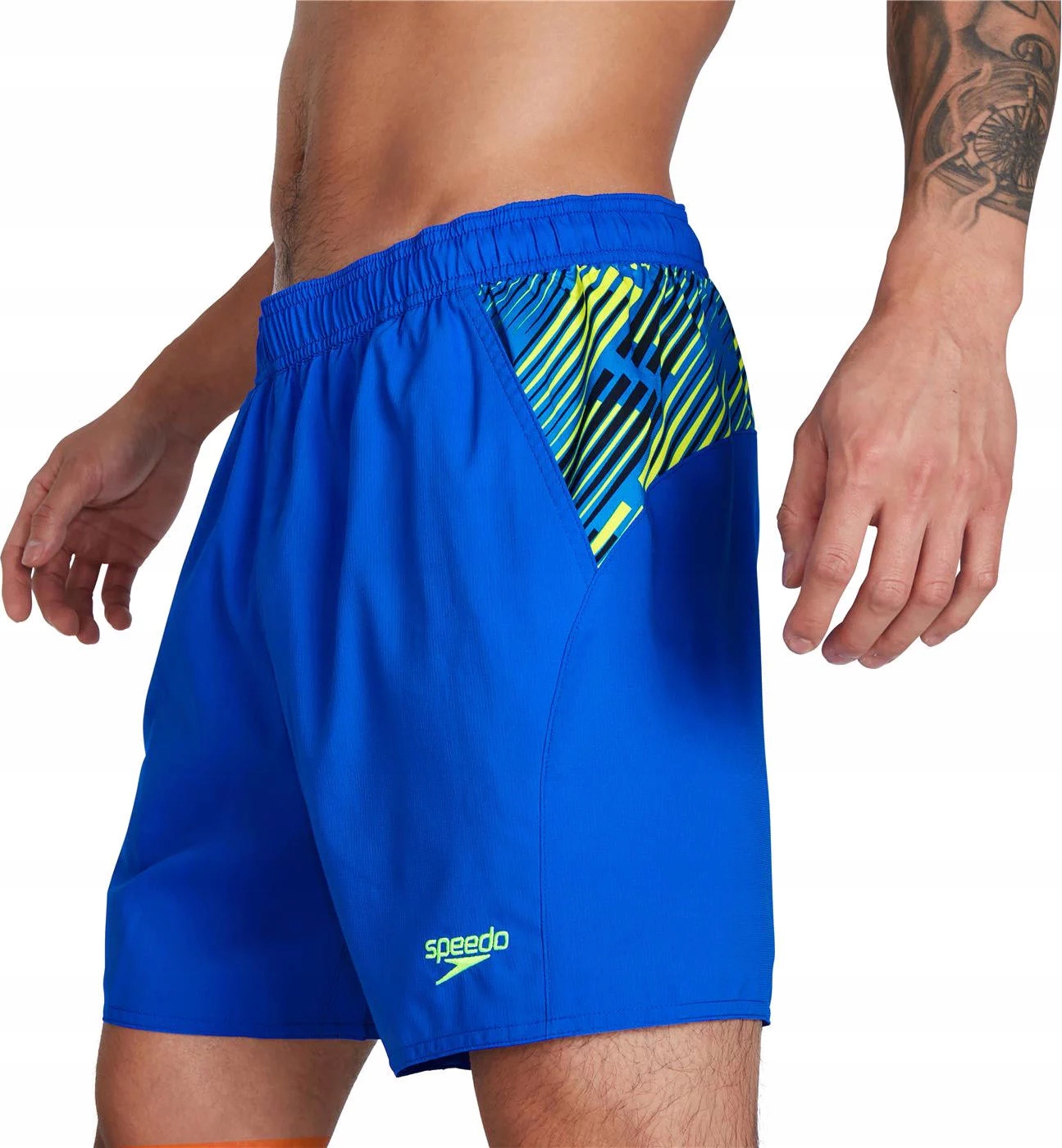 Чоловічі шорти для плавання Sport PNL 16 Speedo — ідеальний вибір для любителів водних видів спорту. Легка, екологічна тканина Xpress Lite Eco, виготовлена з переробленого поліестеру, забезпечить вам зручність і комфорт. Шнур на талії та бічні кишені забезпечують надійну регульовану посадку, а водовідштовхувальне покриття допомагає шортам залишатися сухими на дотик. Динамічна графіка на бічній панелі та під заднім поясом додає стилю, а бічні кишені забезпечують легкість і комфорт шортів. Ідеально підходить для тренувань у басейні та розваг на пляжі.