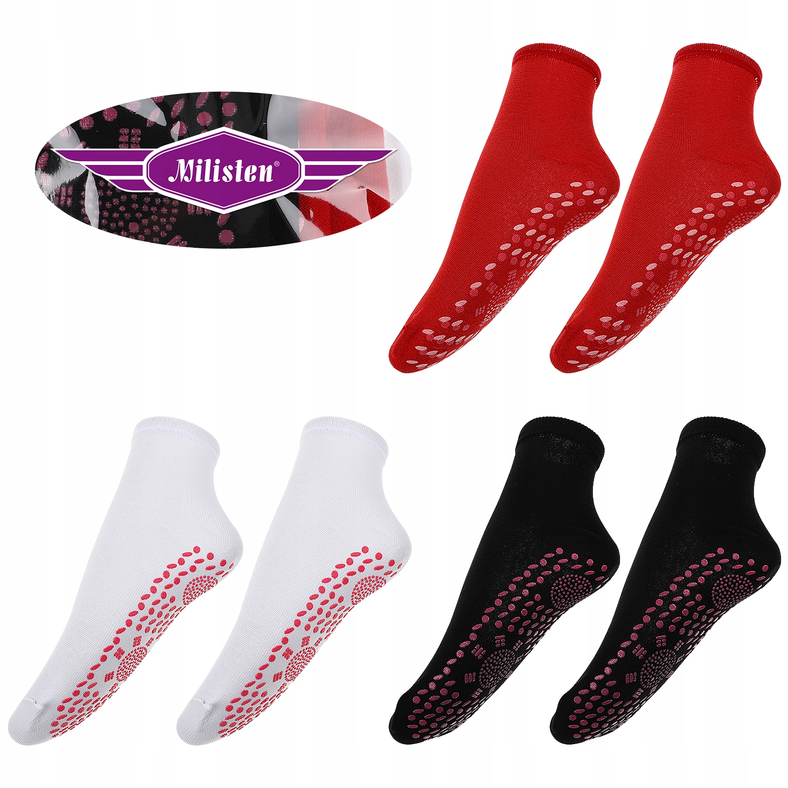 ✅Цей товар являє собою комплект термошкарпеток. Інноваційний силіконовий точковий дизайн стимулює точки акупунктури на стопах для ефекту масажу. Він відповідає вигину вашої стопи, дозволяючи гарячим точкам прилипати до шкіри підошви для комфортної посадки. Тримайте ноги в теплі будь-коли та будь-де й більше не бійтеся холодної зими.