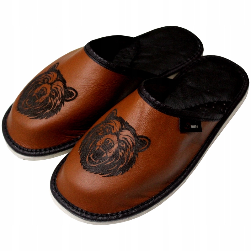 Ці шкіряні тапочки - справжня насолода для чоловіків, які цінують комфорт і оригінальний стиль. Кожна пара цих капців - це маленький витвір майстерності. Детальний мотив ведмедя випалений на м’якій високоякісній шкірі.