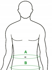 - A: Обхват талії - виміряйте окружність талії на одній висоті.
