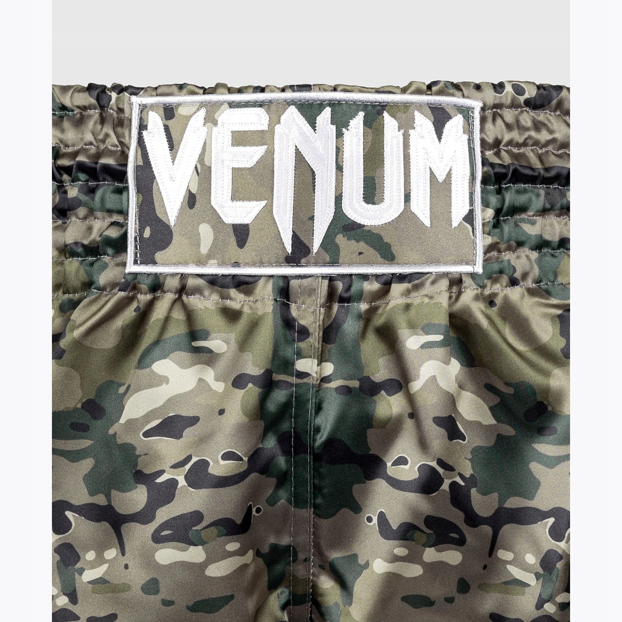 Класичні тренувальні шорти Muay Thai шиються на фабриках Venum у Таїланді. Вони виготовлені з дуже легкого та гнучкого поліестеру, який у поєднанні з їх класичним вільним кроєм та бічними розрізами надасть вам повну свободу рухів під час бою та тренувань. Традиційний широкий пояс забезпечує додаткове зміцнення та захист у шортах для тайського боксу, тому ви можете повністю зосередитися на своєму тілі. Дизайнери подбали про найдрібніші деталі: якісний камуфляжний принт, ретельну обробку та логотип Venum на талії та нозі.