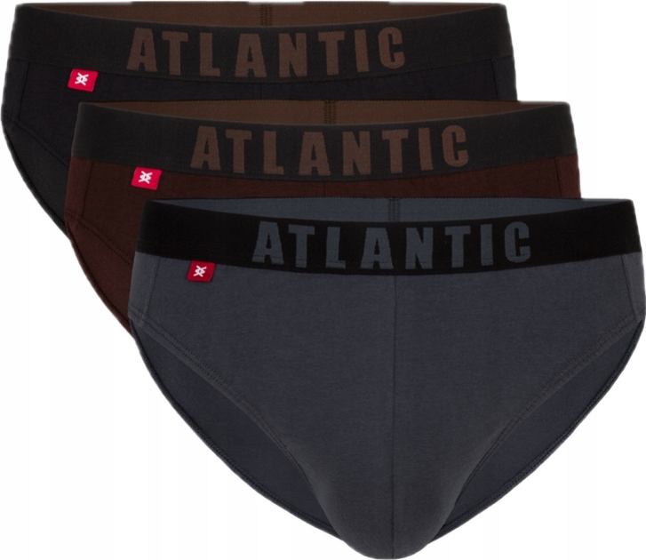 У наборі з трьох кольорів є чоловічі труси трьох кольорів: шоколадний, графітовий і чорний. Труси мають спортивний характер. Вони мають досить вирізані боки та занижену талію. Талія позначена широкою гумкою з мікрофібри з великим написом Atlantic. Труси виготовлені з м'якої та приємної на дотик бавовни в поєднанні з еластаном. Тканина стійка до високих температур і розтягування. Зберігає свої властивості протягом тривалого часу використання. Труси не стискають тіло, не сковують рухів і забезпечують максимальний рівень комфорту та зручності.
