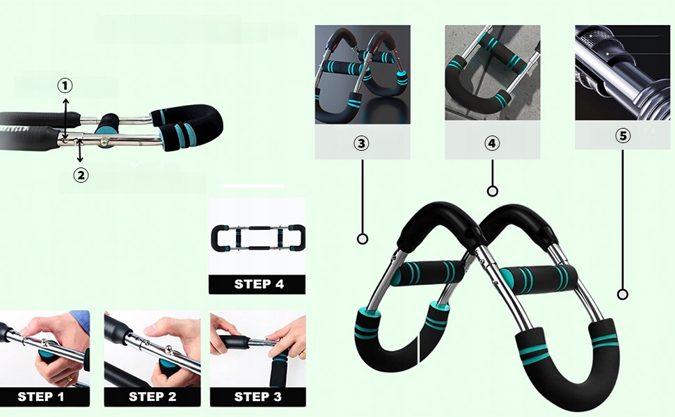 【Багатофункціональне обладнання для силових тренувань】Ця планка для тренування м’язів відрізняється від традиційних палиць для тренування рук, оскільки вона може стимулювати більше груп м’язів, зокрема груди, зап’ястя, руки, спину, ноги та руки. Просто дотримуйтесь стандартних інструкцій, і ваш організм зміцніє. Це простіше, безпечніше та ідеальне рішення для домашнього тренажерного залу.
