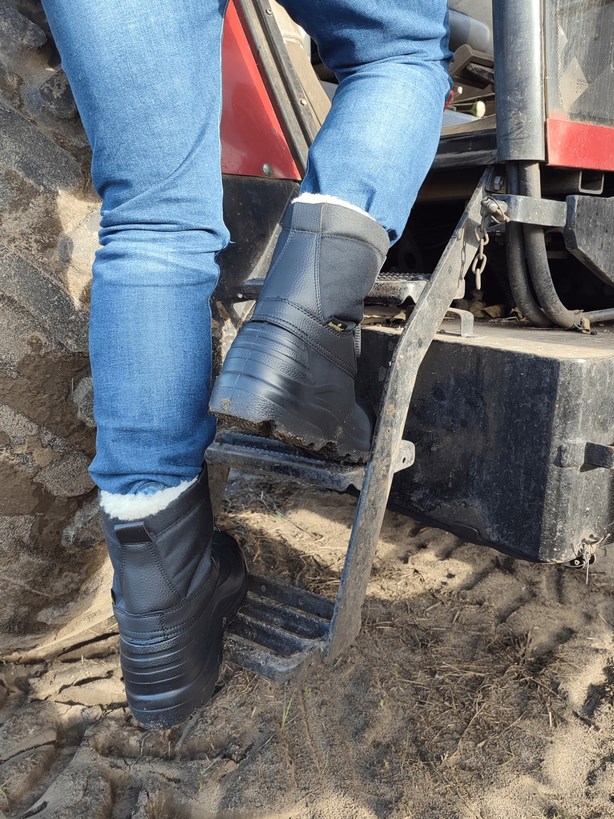 ЧОЛОВІЧІ СНІЖНІ ЧОБОТИ PIONIER 908/ LEMIGO. Чудове утеплене взуття, легке, зручне та дуже просте у використанні. Він поставляється в чорному кольорі. Розмір: 40 - 47. Модель з високим верхом, обробкою м'яким коміром, має вшитий язичок, змінну підкладку з алюмінієвої фольги, фетровий флізелін і комір з овчини, що регулюється шнурками. Вага пари приблизно 900 г. Черевики Wellington розроблені в дизайні суцільного трапера. Виготовлений з якісного матеріалу EVA + поліестер у верхній частині. Взуття легше, ніж вироби з гуми або ПВХ. Основна перевага взуття з EVA - твердість і гнучкість завдяки інгредієнтам, що містяться в хімічній суміші. Цей матеріал стійкий до деформації, розривів і шкідливого впливу сонячних променів. Зберігає свої гнучкі властивості навіть при дуже низьких температурах - 30°C. Високий ступінь теплоізоляції цього взуття гарантує дуже високий комфорт використання. Антиковзаюча підошва забезпечує стійкість. Міцність у поєднанні з комфортом і чудовою теплоізоляцією робить ці веллінгтони з нетерпінням вибирають мисливці, рибалки та всі, хто орієнтується на якість і комфорт, особливо в мінливих погодних умовах.