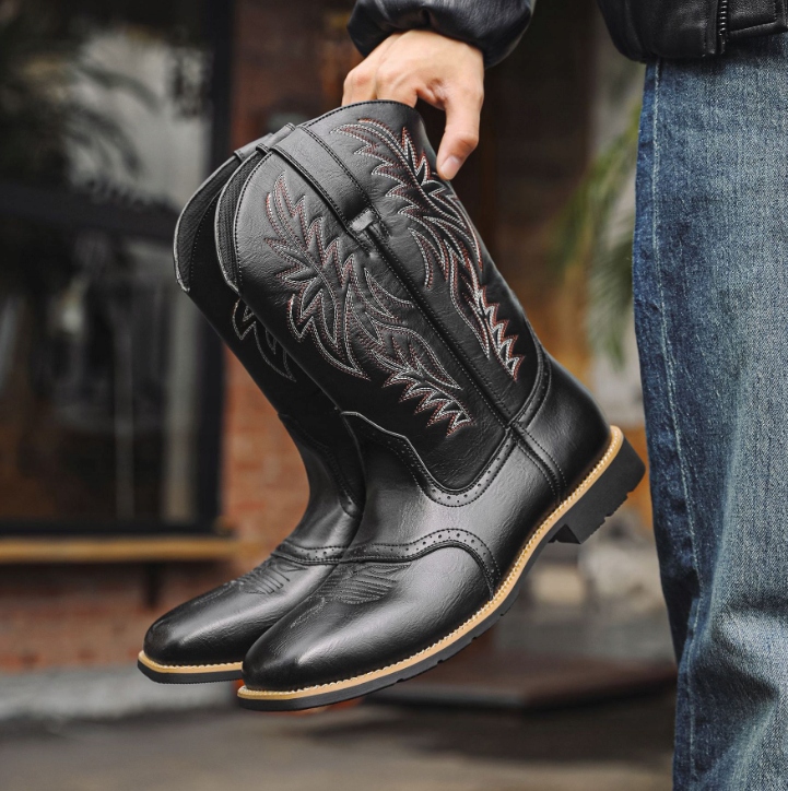 Чоловічі вінтажні ковбойські чоботи, шкіряні чоботи на високих підборах із вишивкою